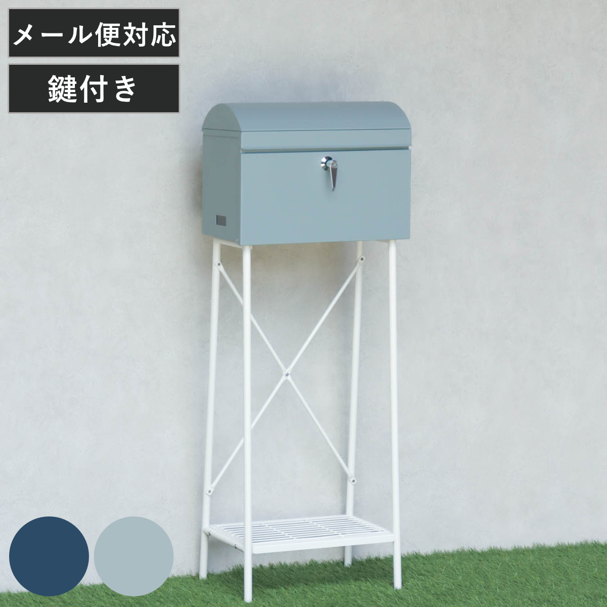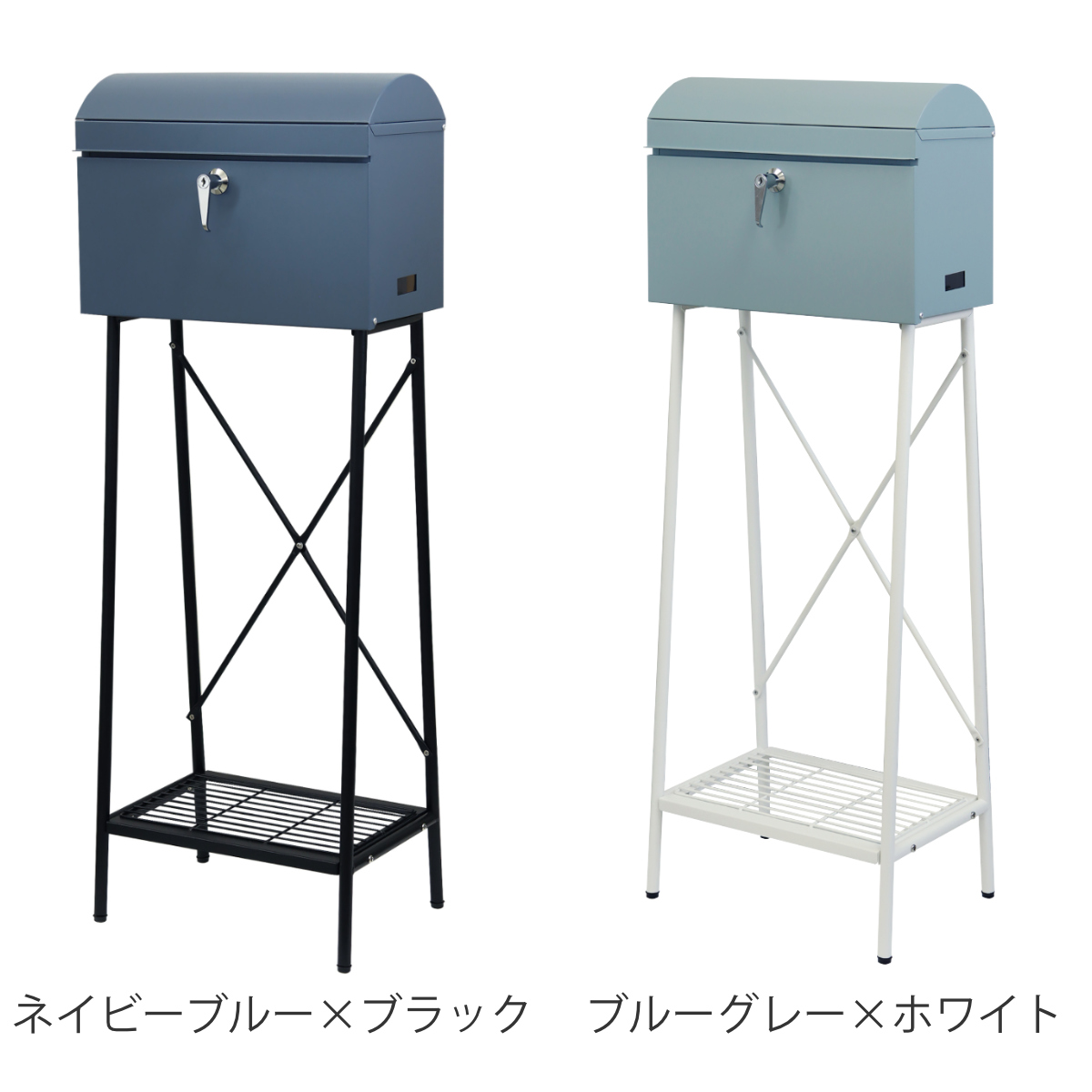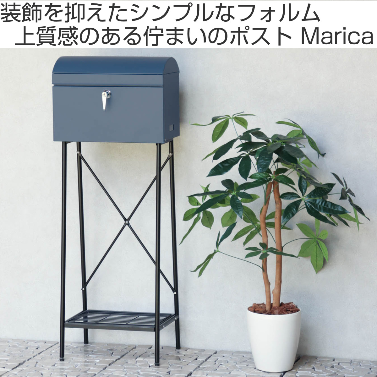 郵便ポスト スタンドポスト マリカ ( ポスト スタンド 郵便 郵便受け デザインポスト 鍵付き 新聞受け メールボックス 横型 スタンド型 鍵 一戸建て 屋外 玄関 自立式 ハンドル 確認窓 A4 おしゃれ ) 【ネイビーブルー×ブラック】