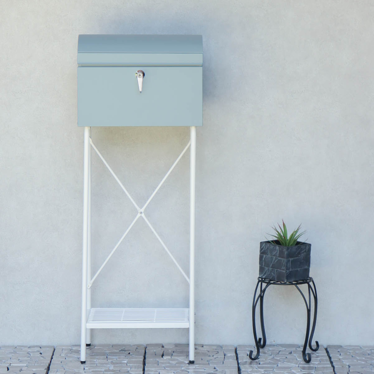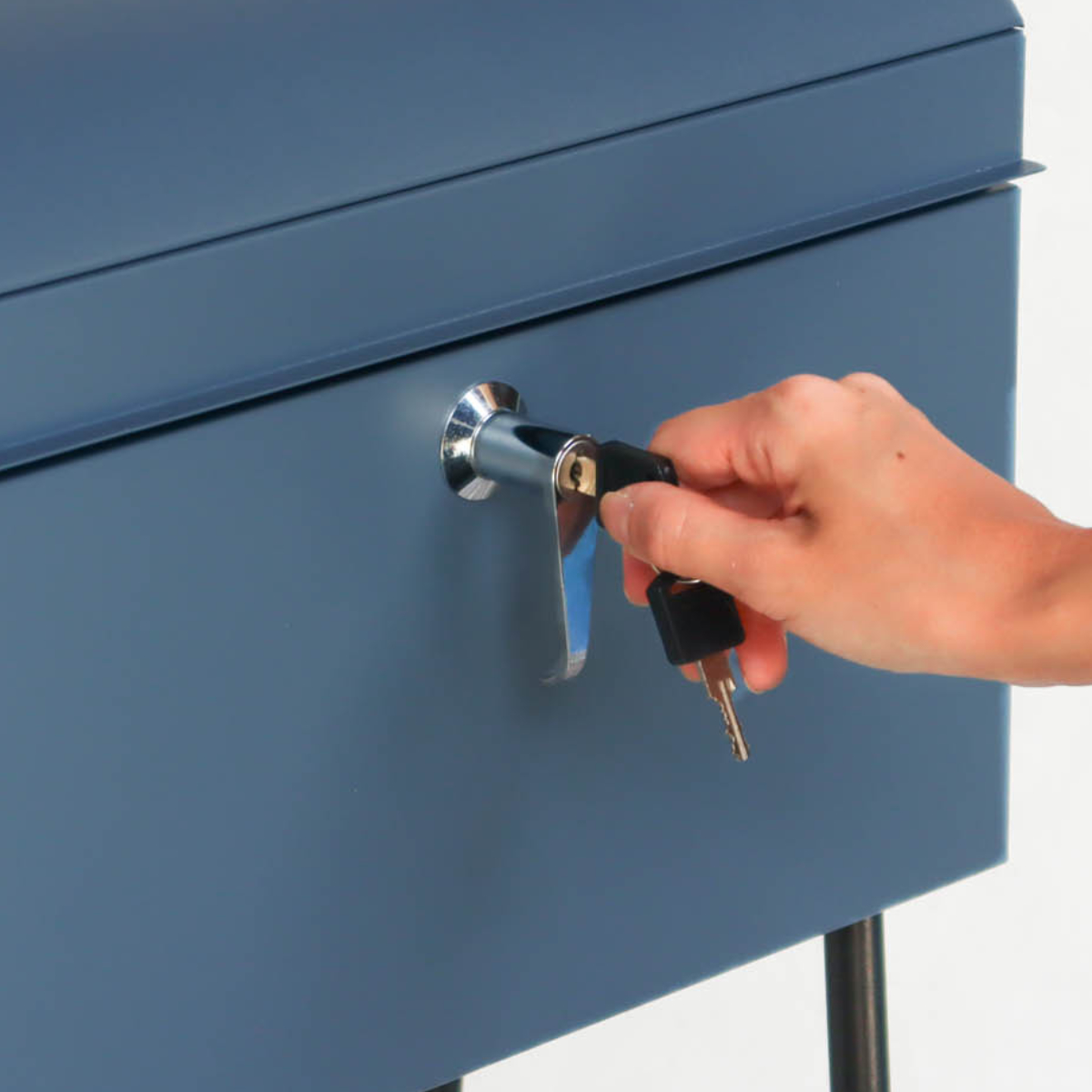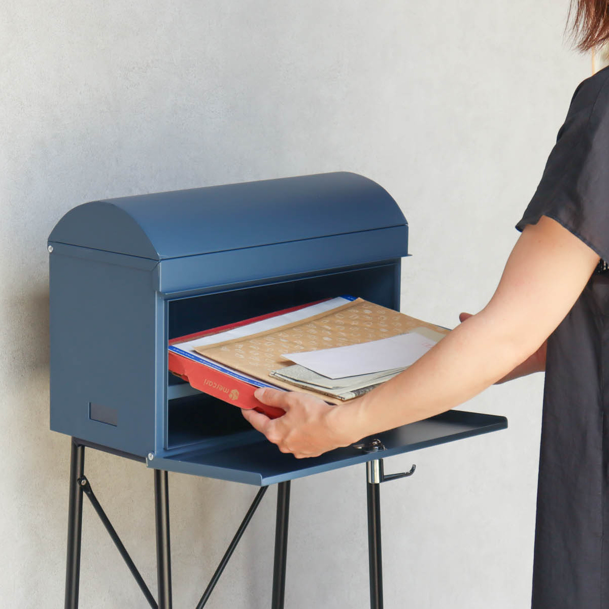 郵便ポスト スタンドポスト マリカ ( ポスト スタンド 郵便 郵便受け デザインポスト 鍵付き 新聞受け メールボックス 横型 スタンド型 鍵 一戸建て 屋外 玄関 自立式 ハンドル 確認窓 A4 おしゃれ ) 【ネイビーブルー×ブラック】