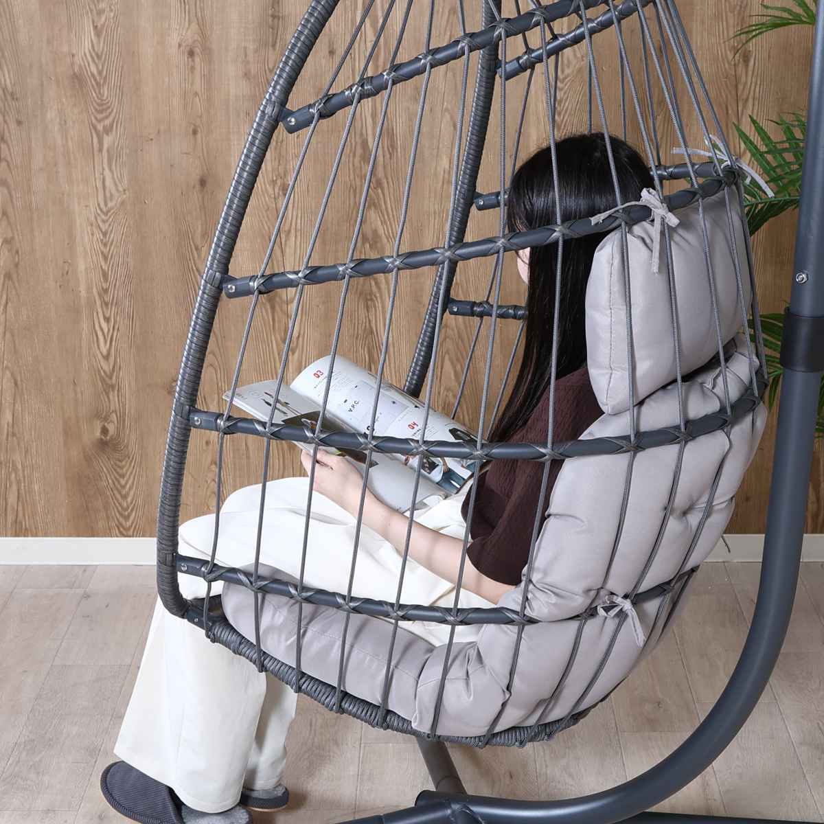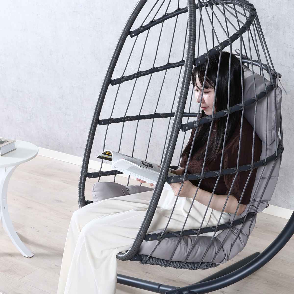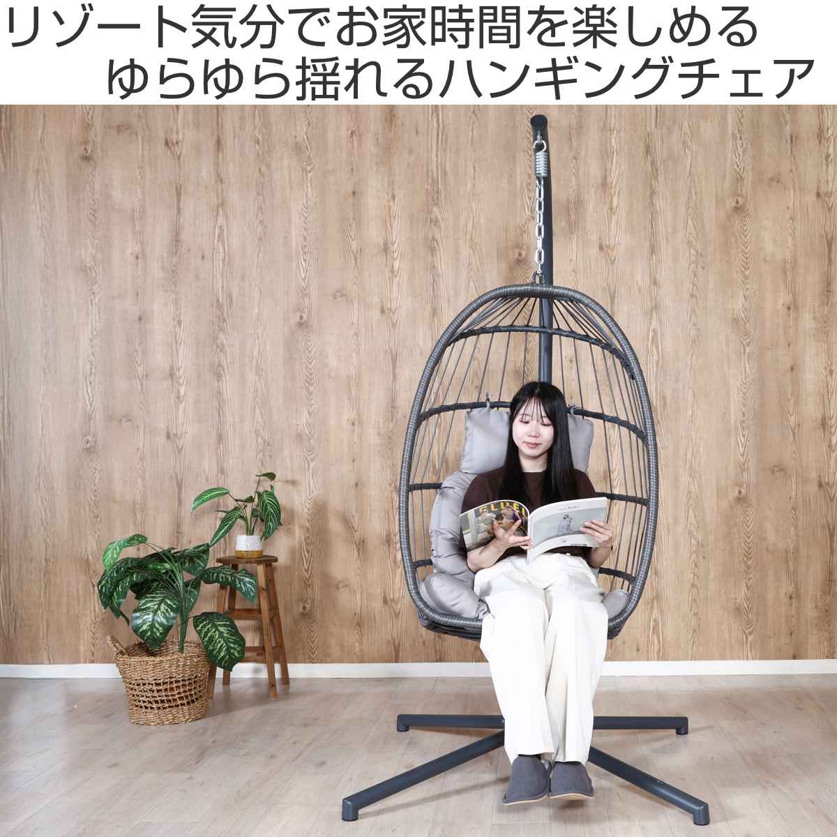 ゆらゆらと揺れる浮遊感が心地良いハンギングチェアです。リラックスしながら本を読んだり音楽を聴いたりと、優雅に過ごすことができます。