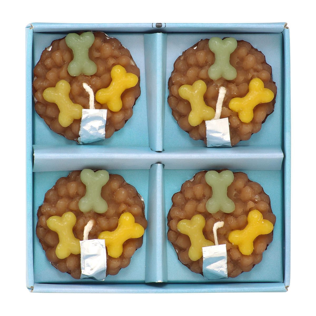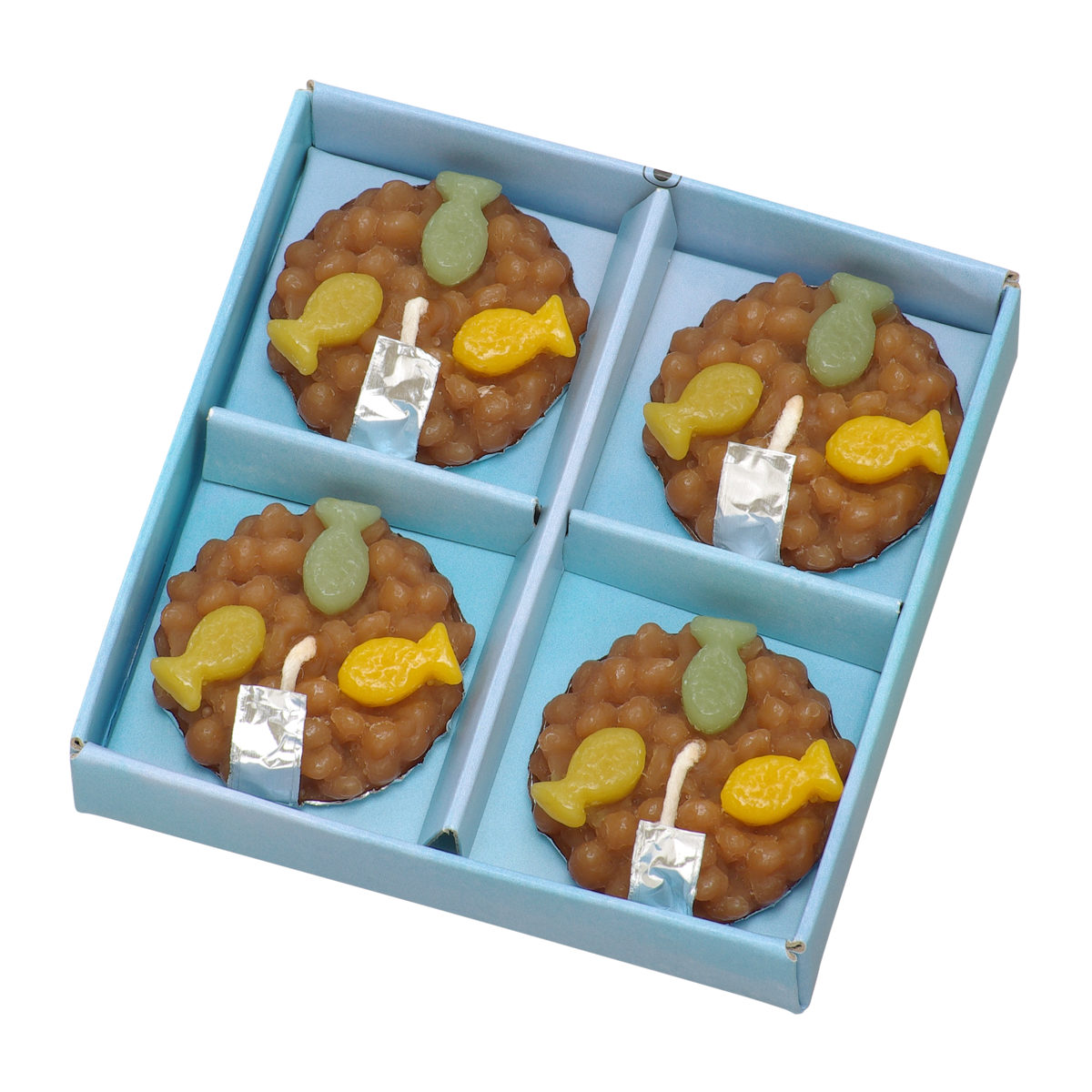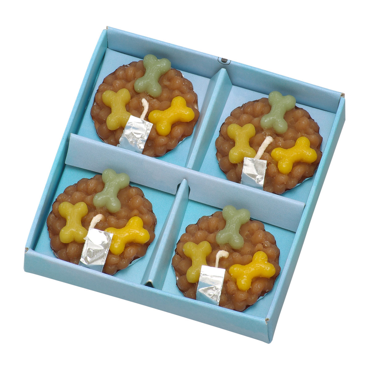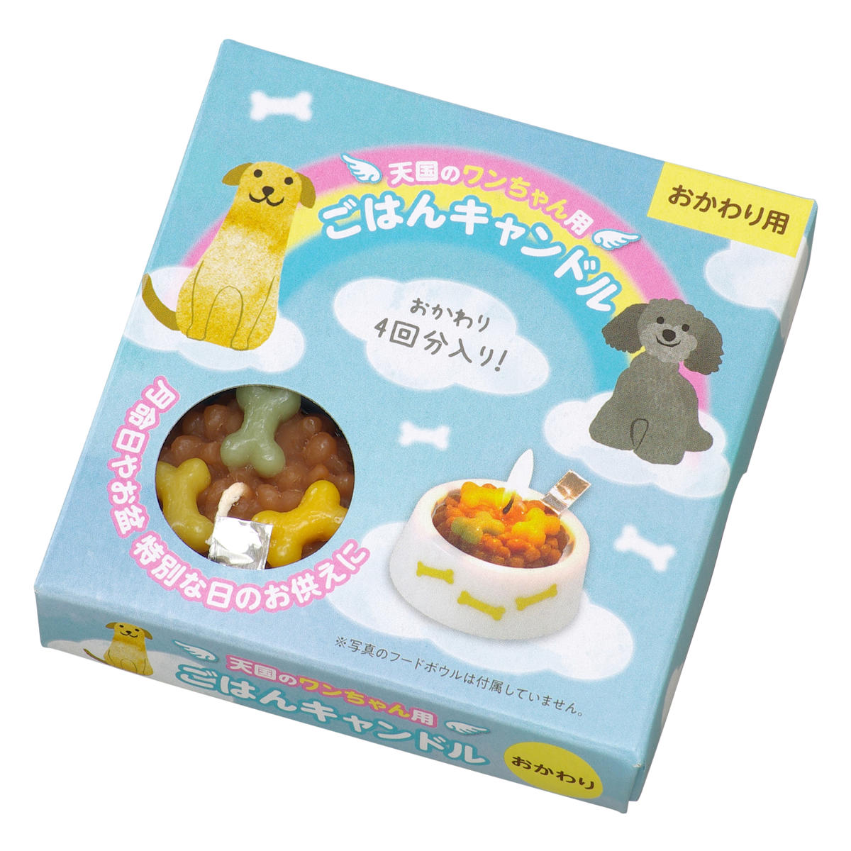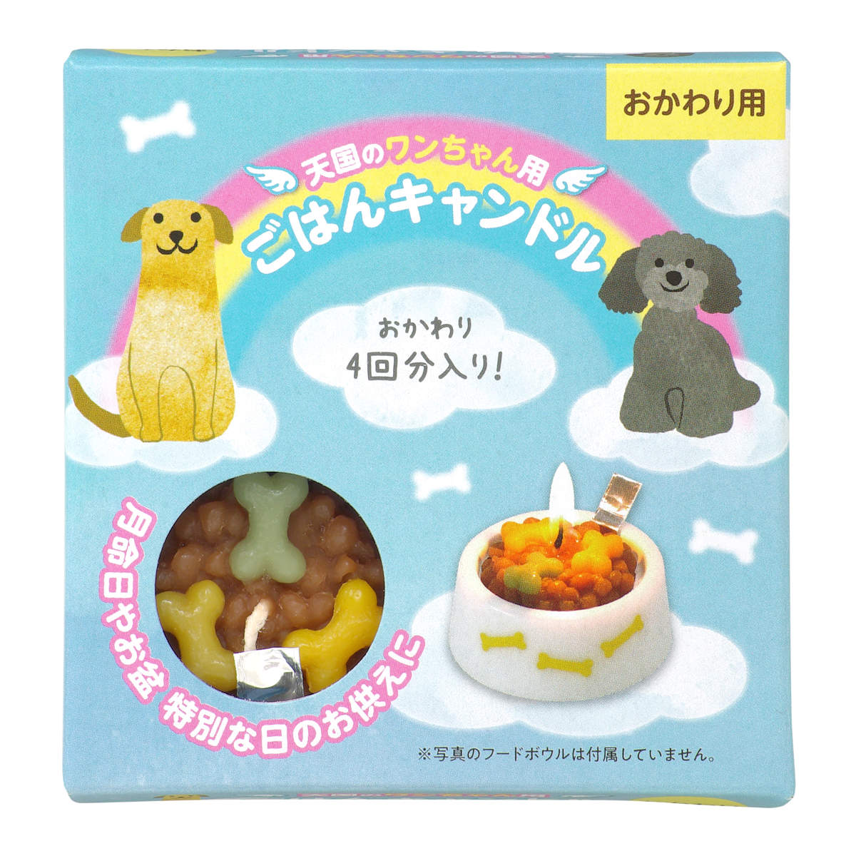 特別な日に灯す「ごはんキャンドル」のおかわり用4個入りです。灯し終わったらアルミシールのつまみを持ってはがし、新しいごはんをフードボールに乗せておかわりできます。