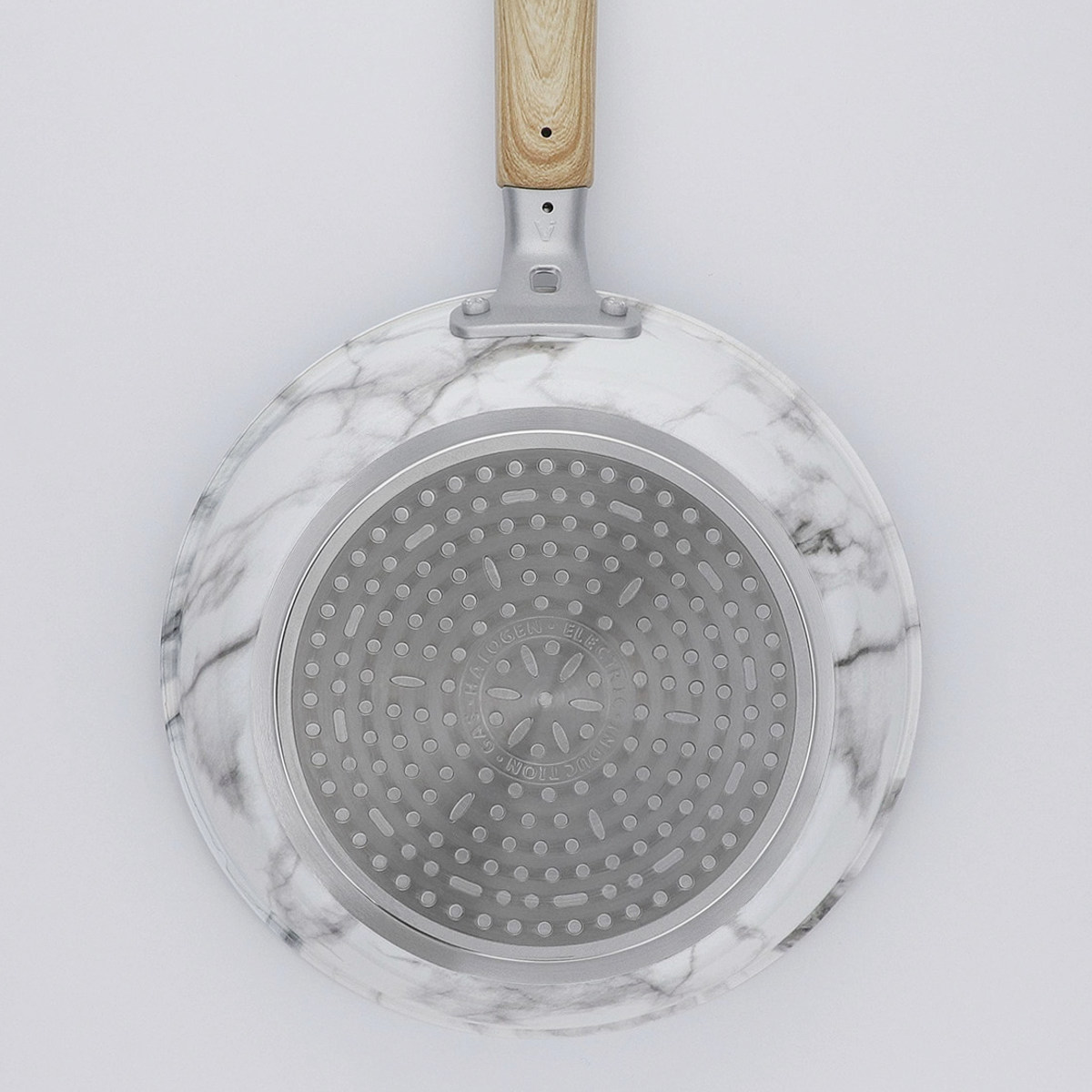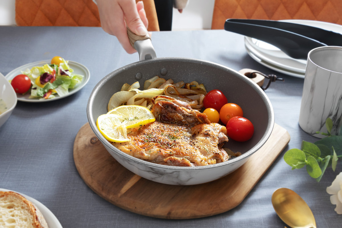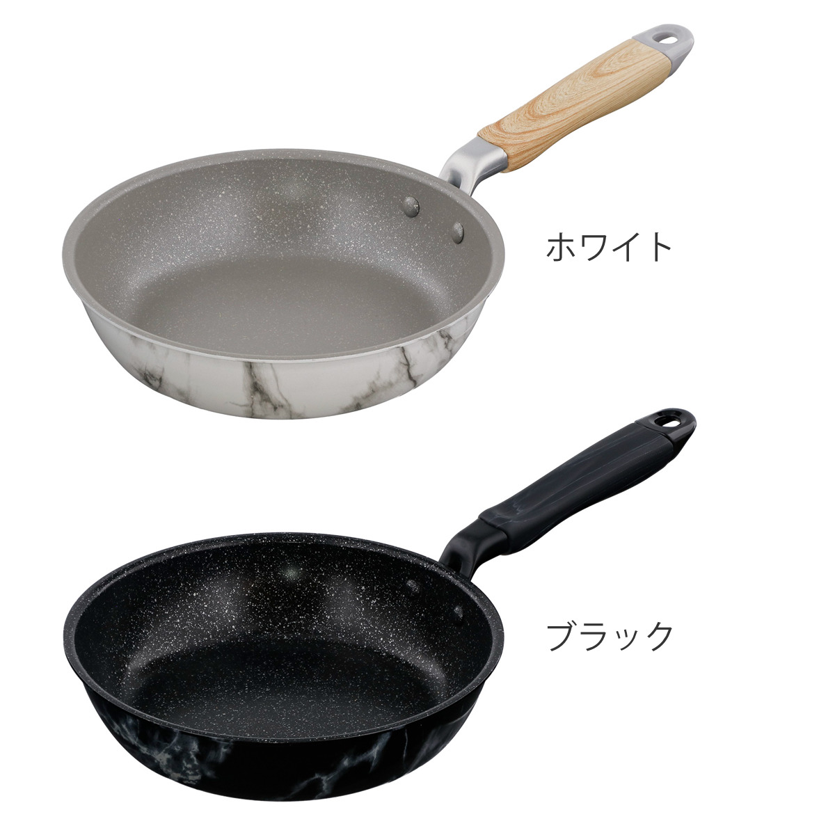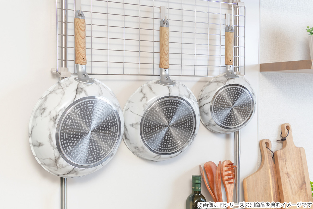 大理石模様が目を引く、オシャレなフライパンです。表面には高度な技術を用いた上品な大理石調デザインを施し、調理中も収納時も洗練された印象を与えます。