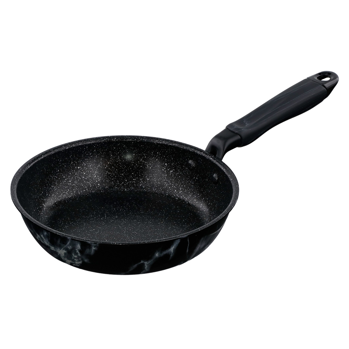 フライパン 20cm IH対応 ふっ素樹脂加工 MARBLE KITCHEN ( ガス火対応 オール熱源対応 炒め鍋 いため鍋 ふっ素加工 軽い 20センチ フッ素コーティング アルミ製 軽量 大理石柄 おしゃれ ) 【ブラック】