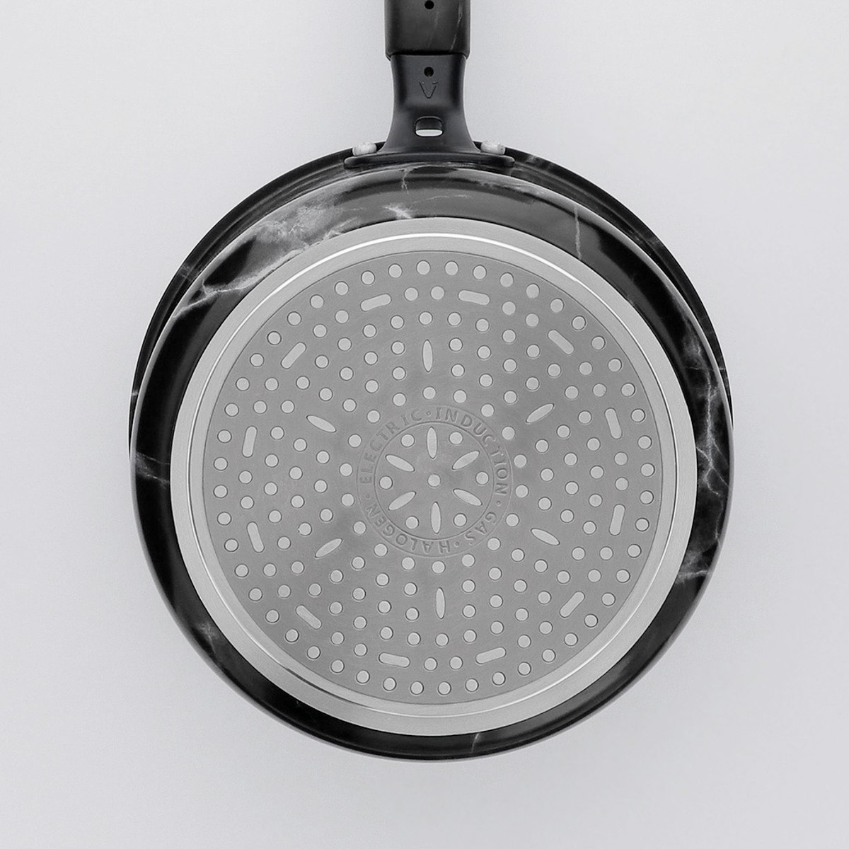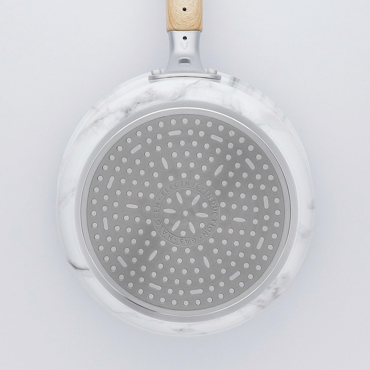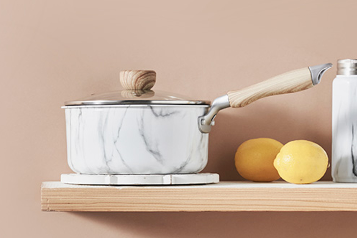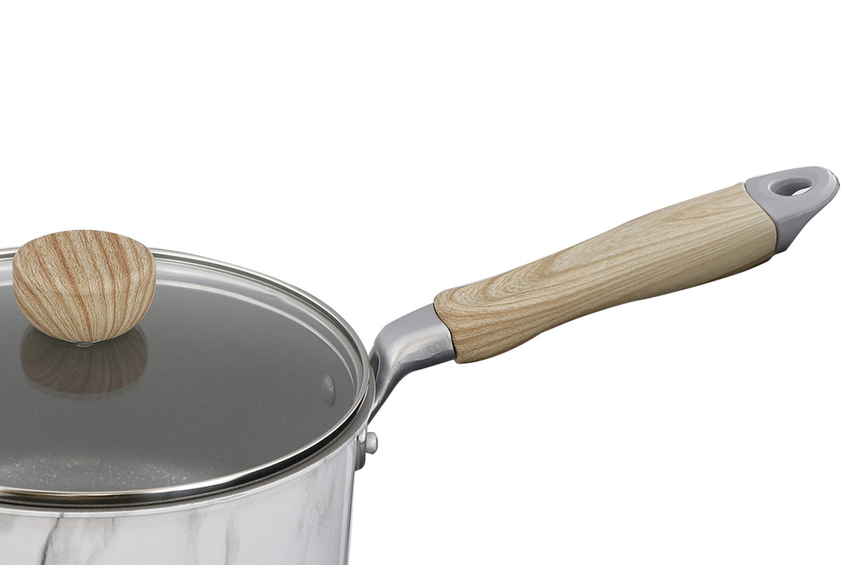 大理石模様が目を引く、オシャレなソースパンです。表面には高度な技術を用いた上品な大理石調デザインを施し、調理中も収納時も洗練された印象を与えます。