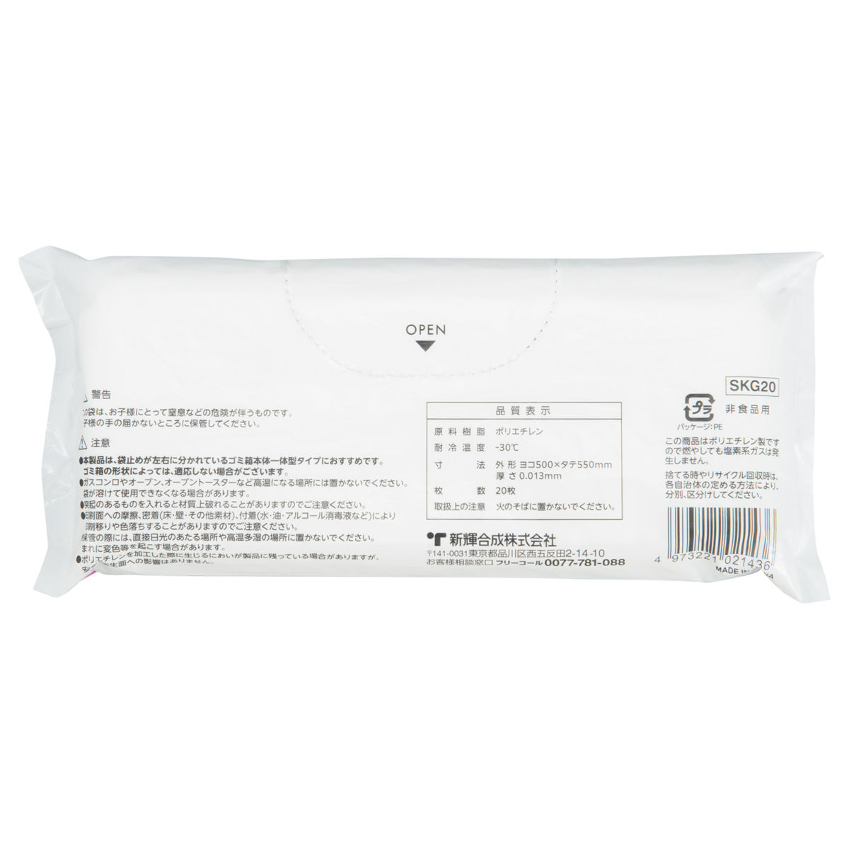 ●1枚あたりの容量約20Lです。