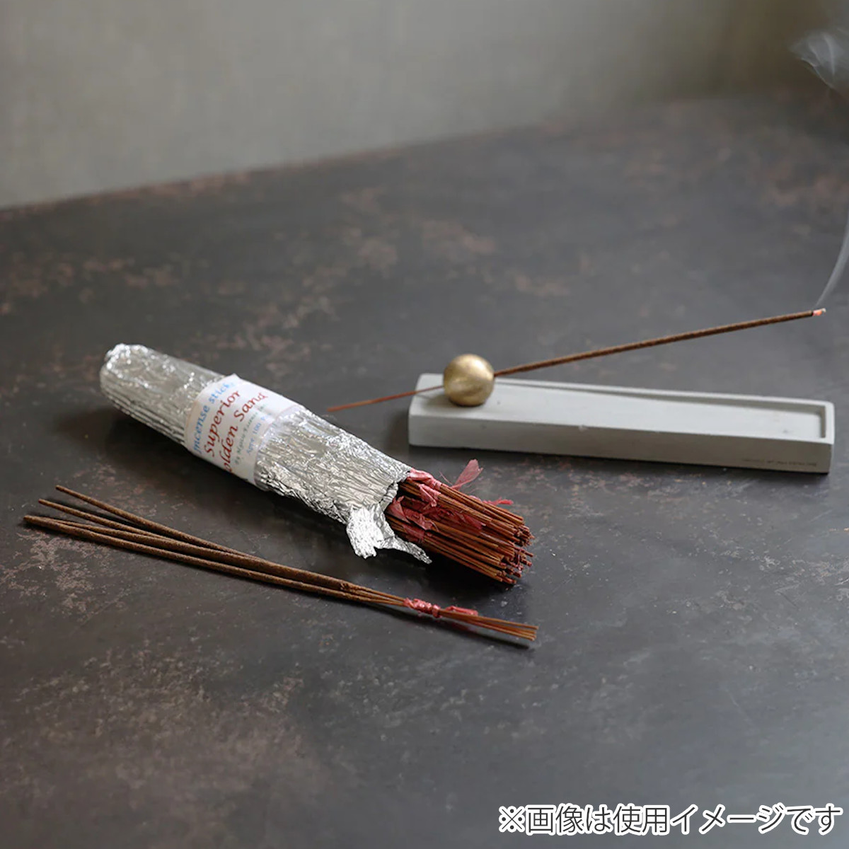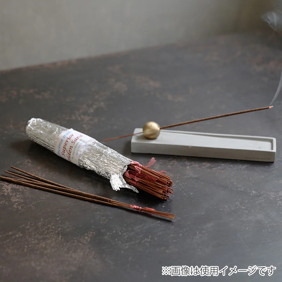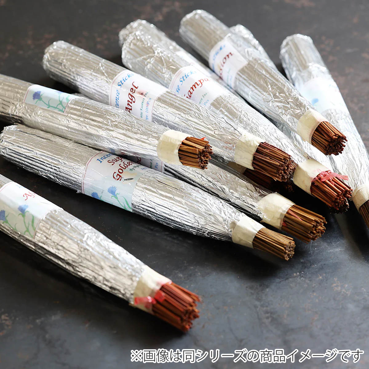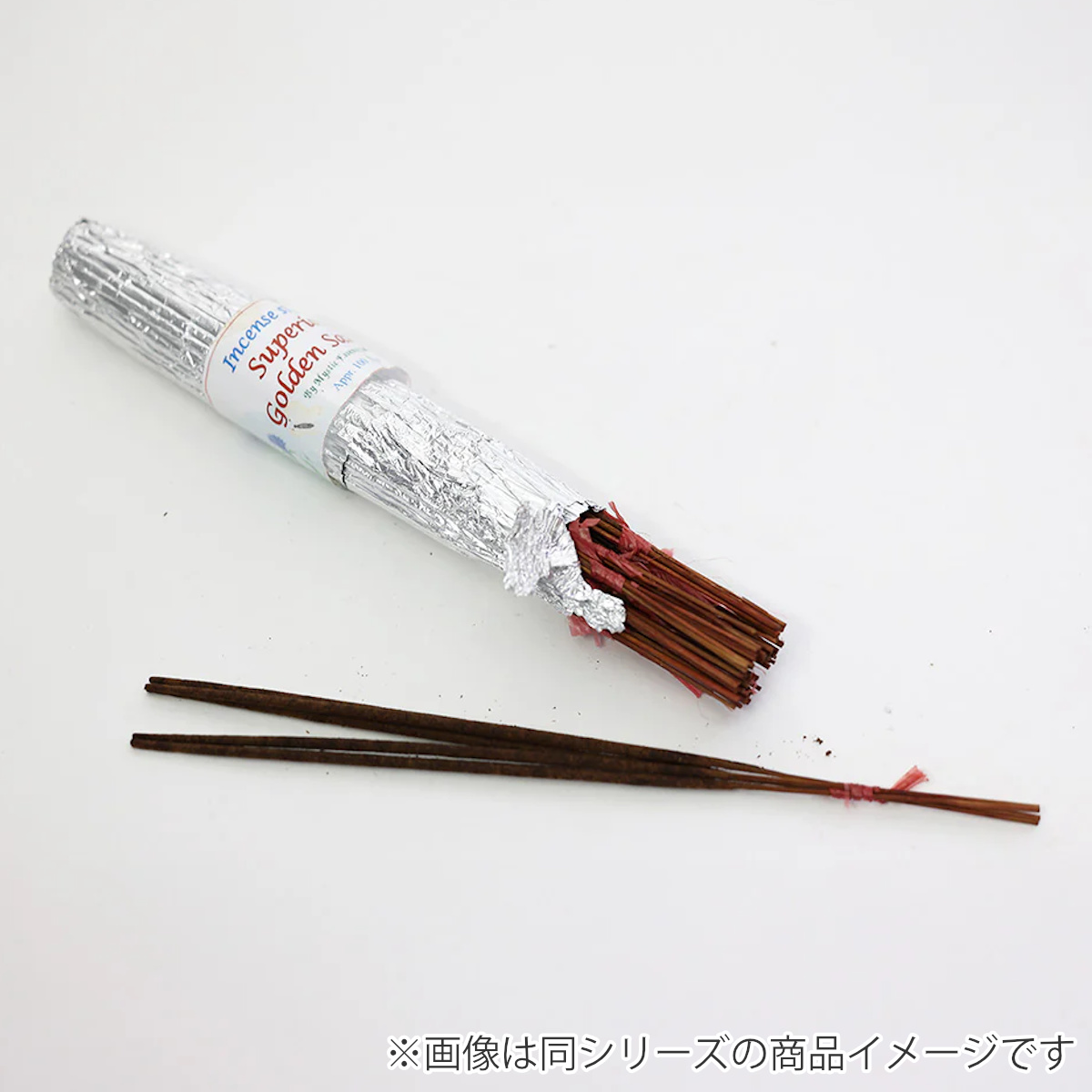 銀紙でざっくりと巻かれた、ちょっと無骨なお香束です。きっちりとした印象ではなく、ラフで日常使いしやすいデザインです。普段使いはもちろん、贈り物にもオススメです。