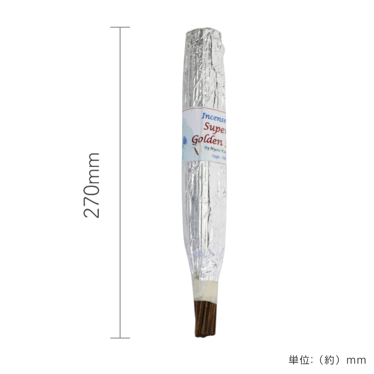 約27cmのロングサイズのスティックタイプで、約100本入りの大容量です。1本あたりの燃焼時間は約1時間なので、ゆっくりと香りを楽しむことができます。