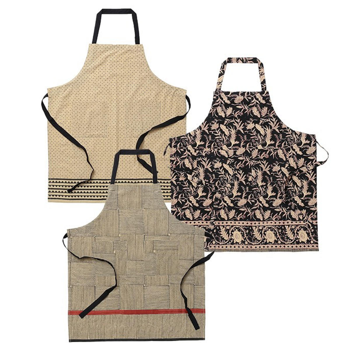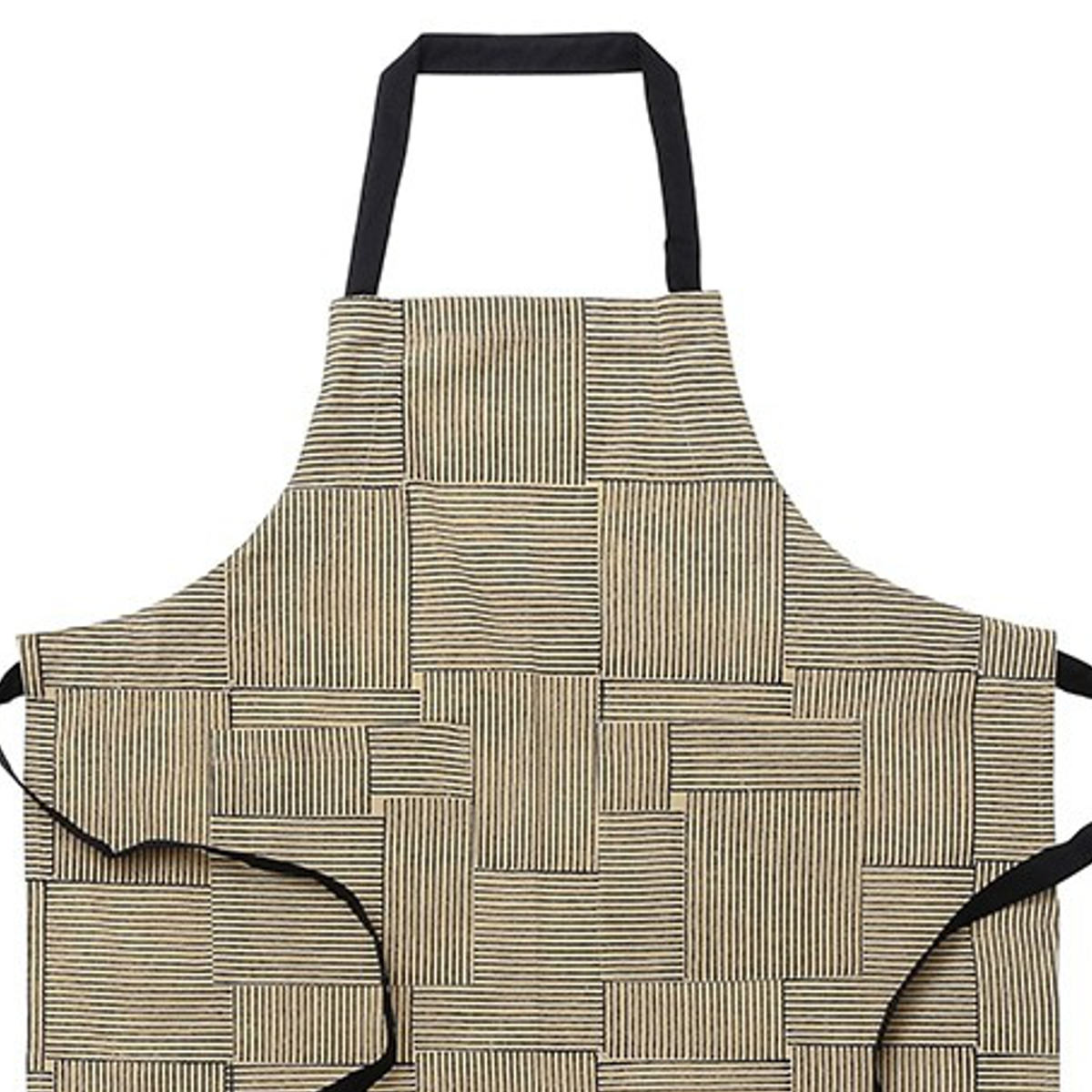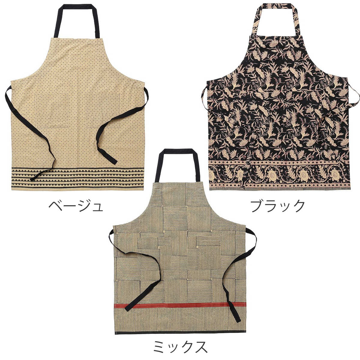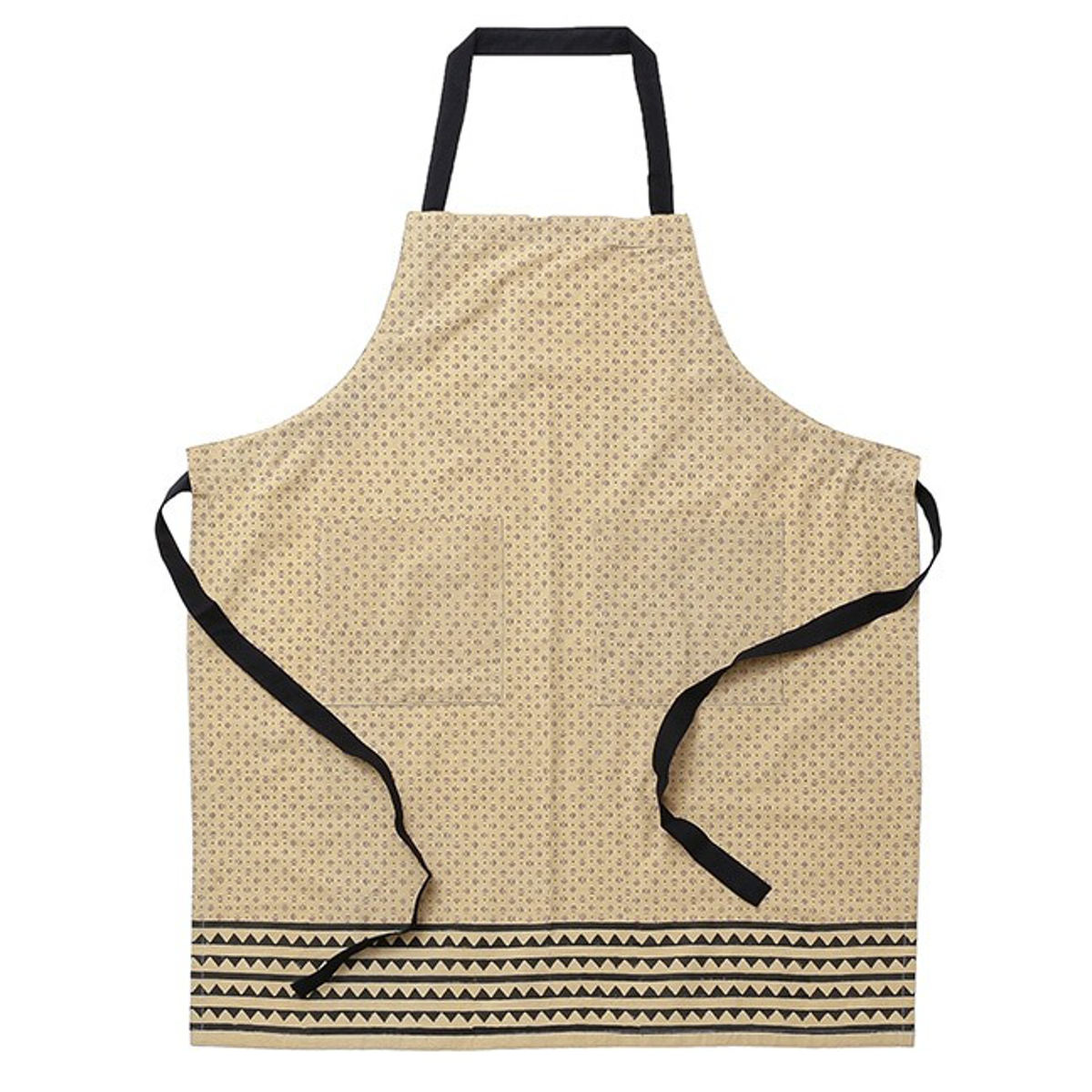 エプロン ブロックプリント モダン 綿100% ( キッチンエプロン 胸当てエプロン ポケット付き 肩ひも 首掛け型 ビブエプロン 台所エプロン 大人用 コットン 綿 おしゃれ かわいい 腰ひも ハンドメイド DIY レディース ) 【ベージュ】