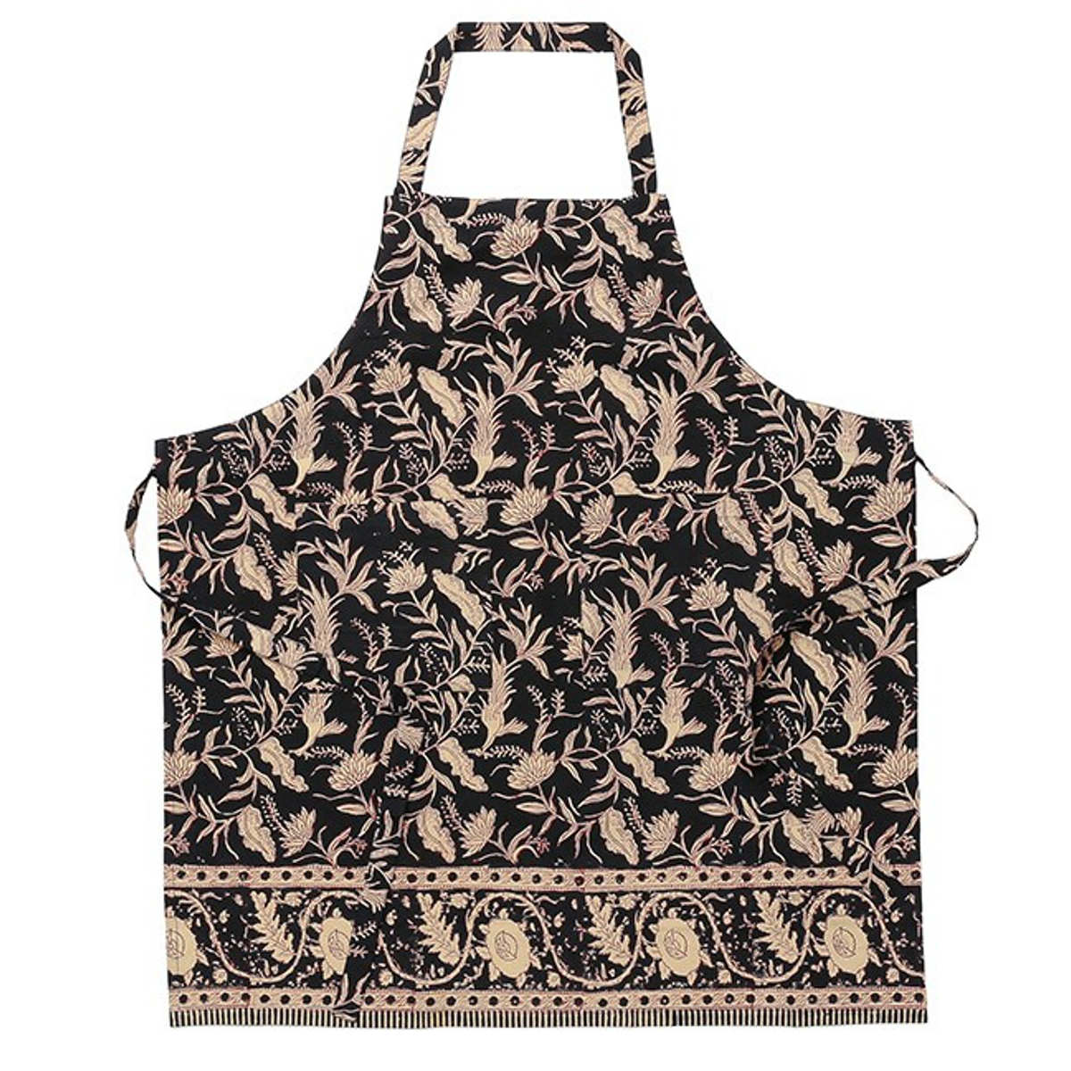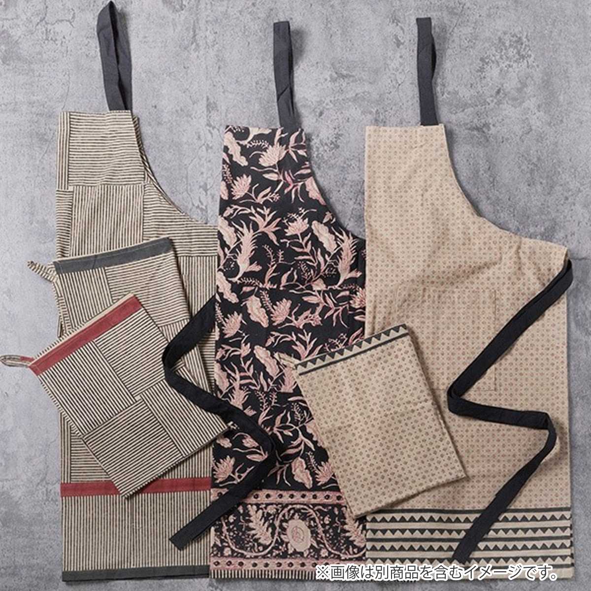 インドで親しまれている染色技法、ブロックプリントによって仕立てられたエプロンです。手彫りの木版を使った伝統技法ならではの、機械では表現できない優しい風合いが魅力です。