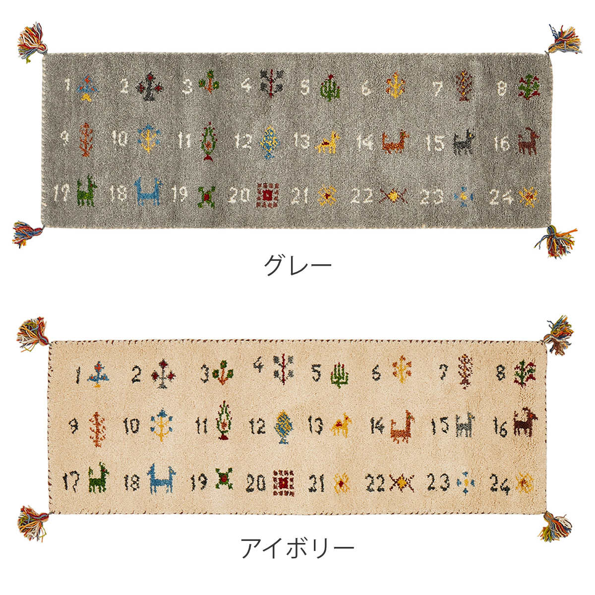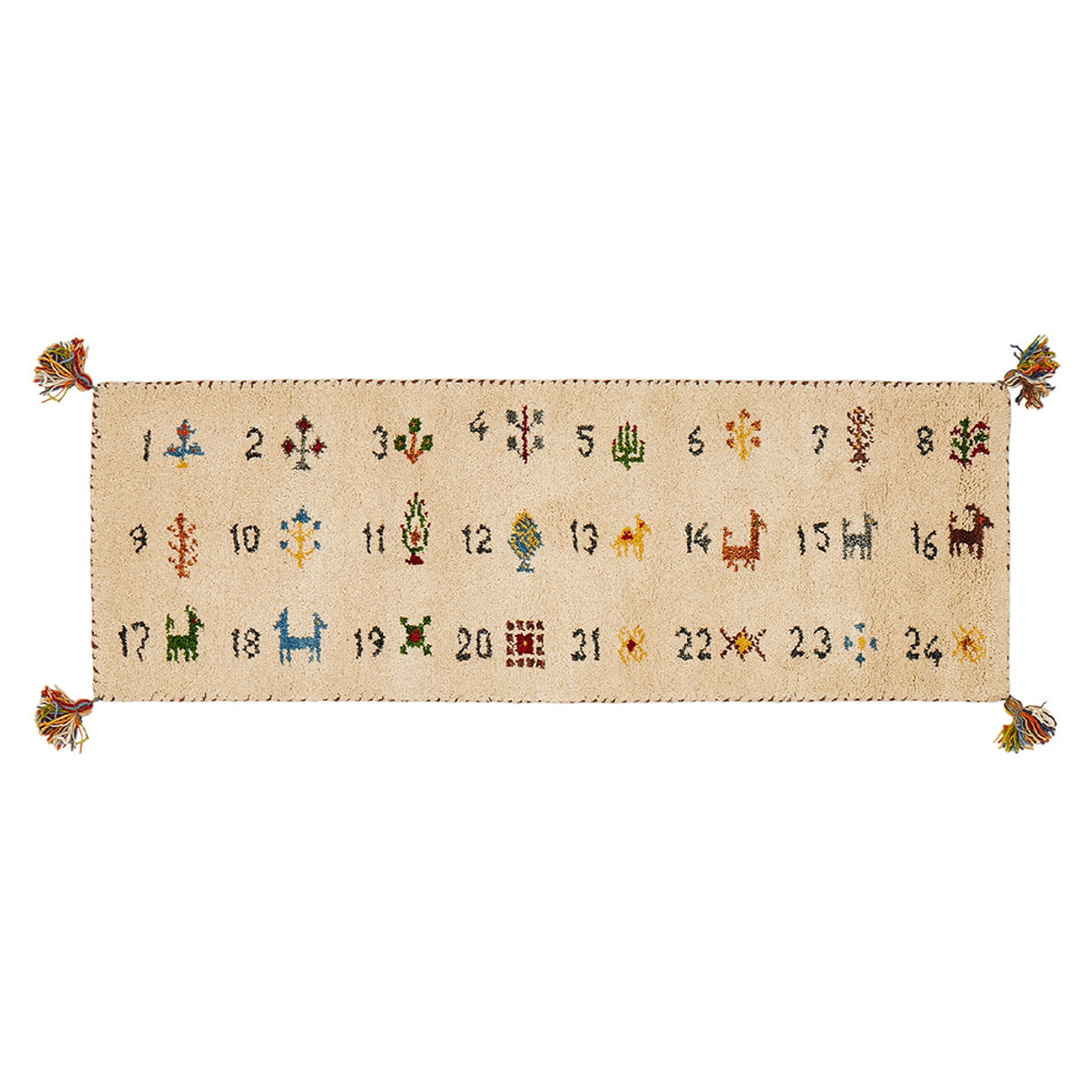 四隅にはタッセルをあしらい、素朴で愛らしいアクセントを添えています。暮らしに寄り添い、長く使うほどに愛着が増す1枚です。