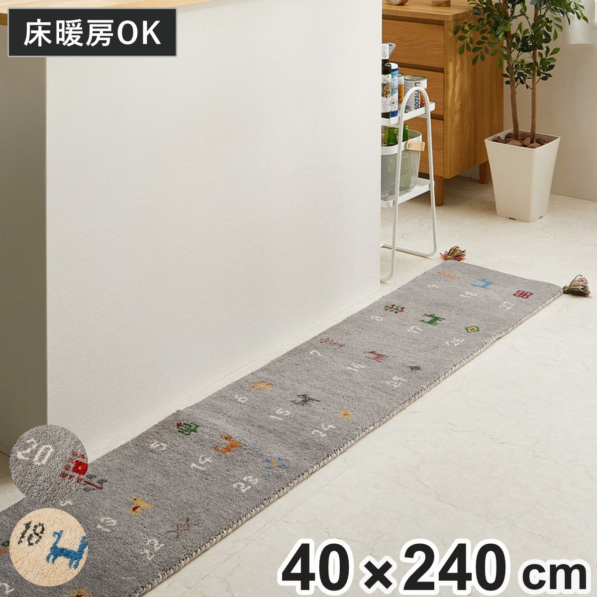 キッチンマット GABBEH ギャッベ ヌメロ 40×120cm ( ) 【アイボリー】