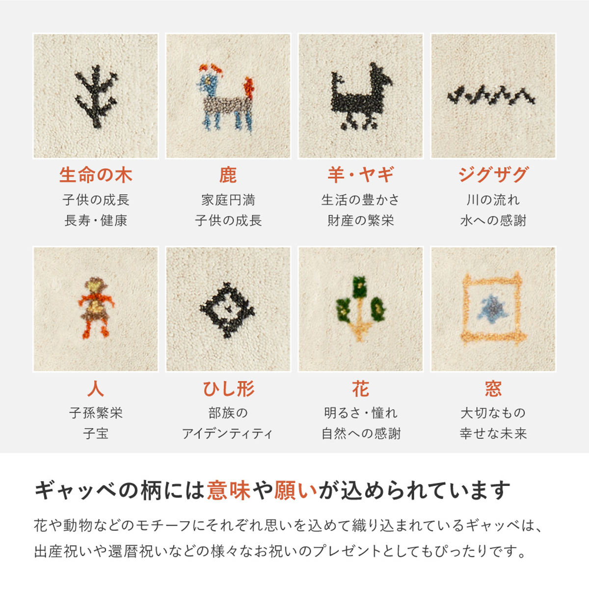ギャッベの柄には意味や願いが込められています