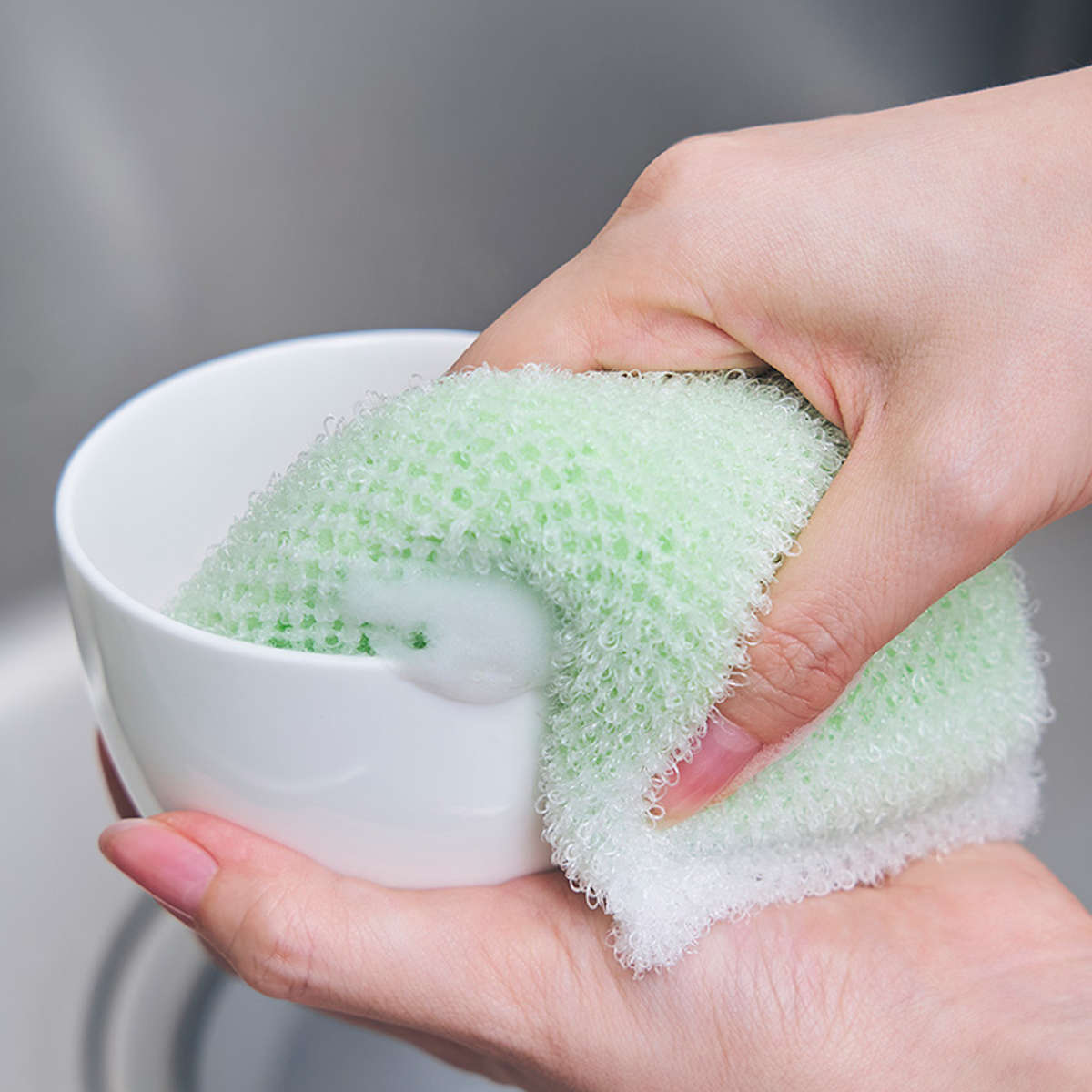 ソフトなネットタイプのスポンジで、グラスやプラスチック製品などのデリケートな食器をやさしく洗えます。汚れをしっかりキャッチするパイルネット構造で、細かな汚れもすっきり落とします。