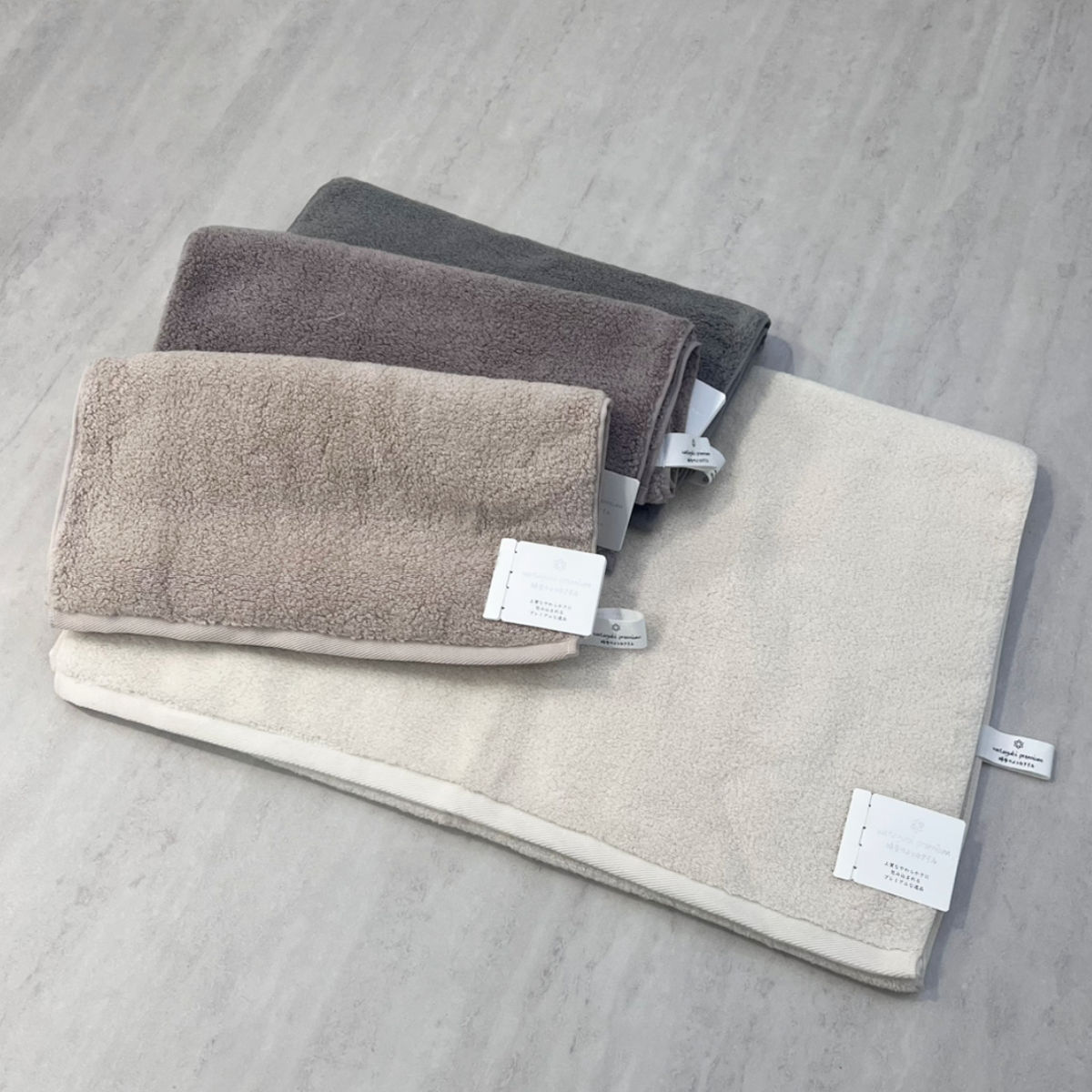 バスタオル、フェイスタオルの2サイズをご用意しています。用途に合わせてお選びいただけます。