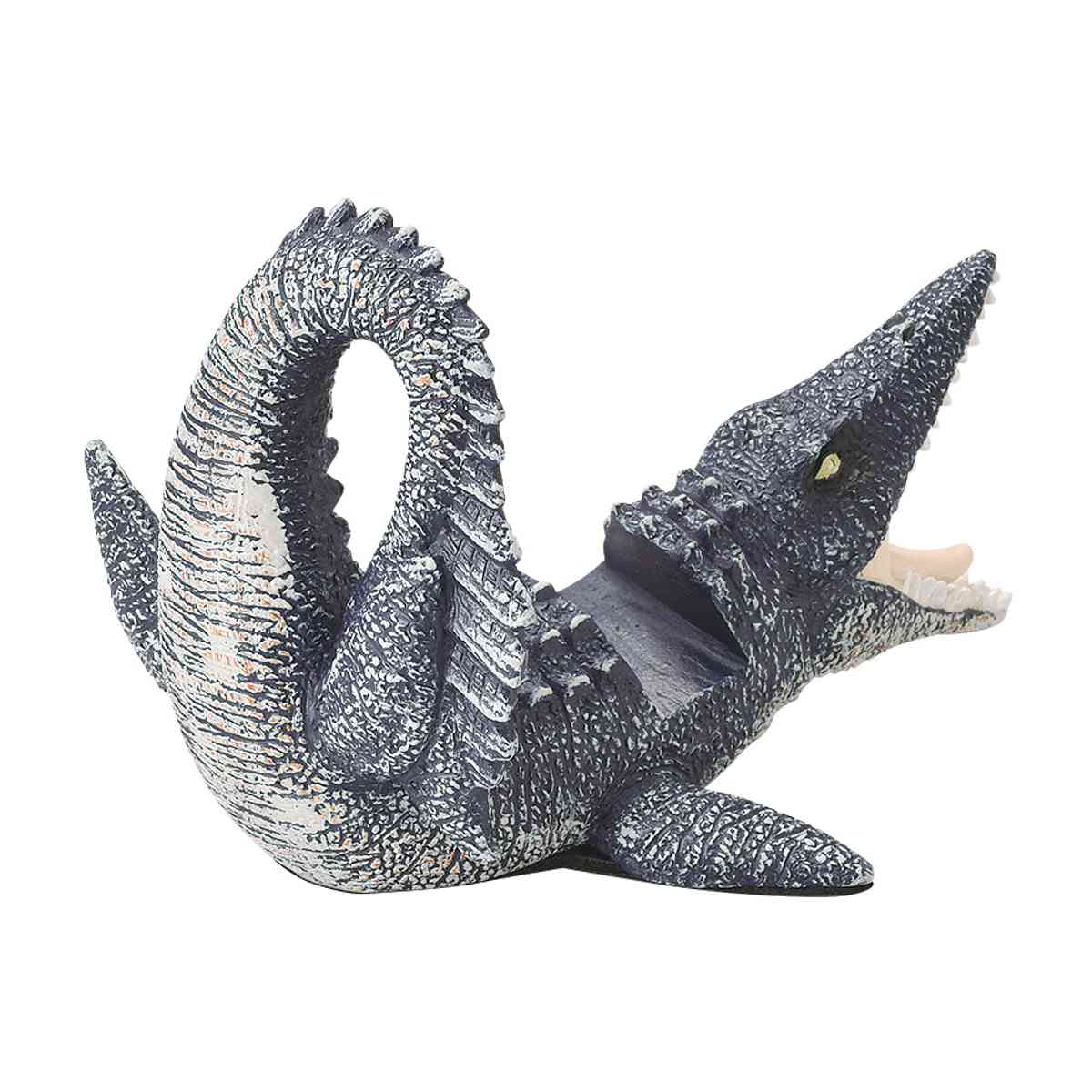 大きく口を開け、獲物を狙う瞬間を切り取ったモサザウルスのスマホスタンドです。存在感のある造形が、デスクや棚にワイルドな迫力をプラスします。
