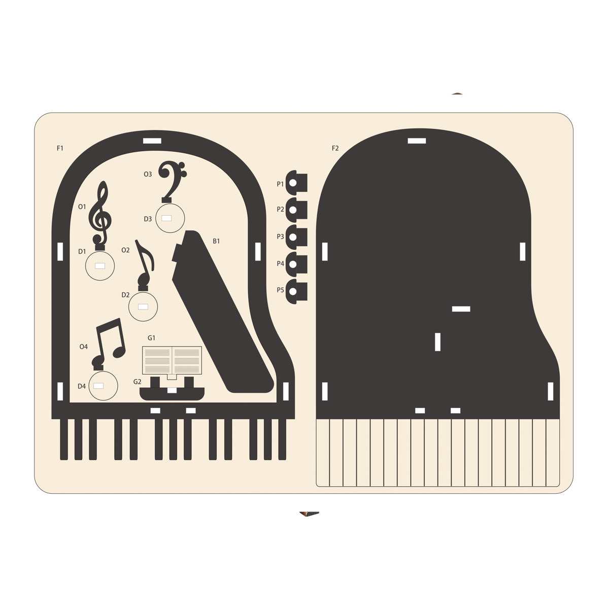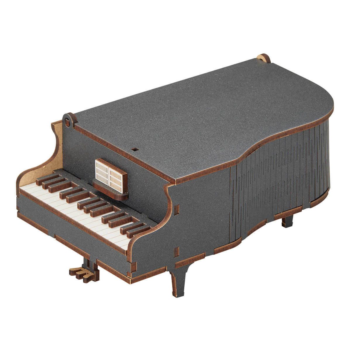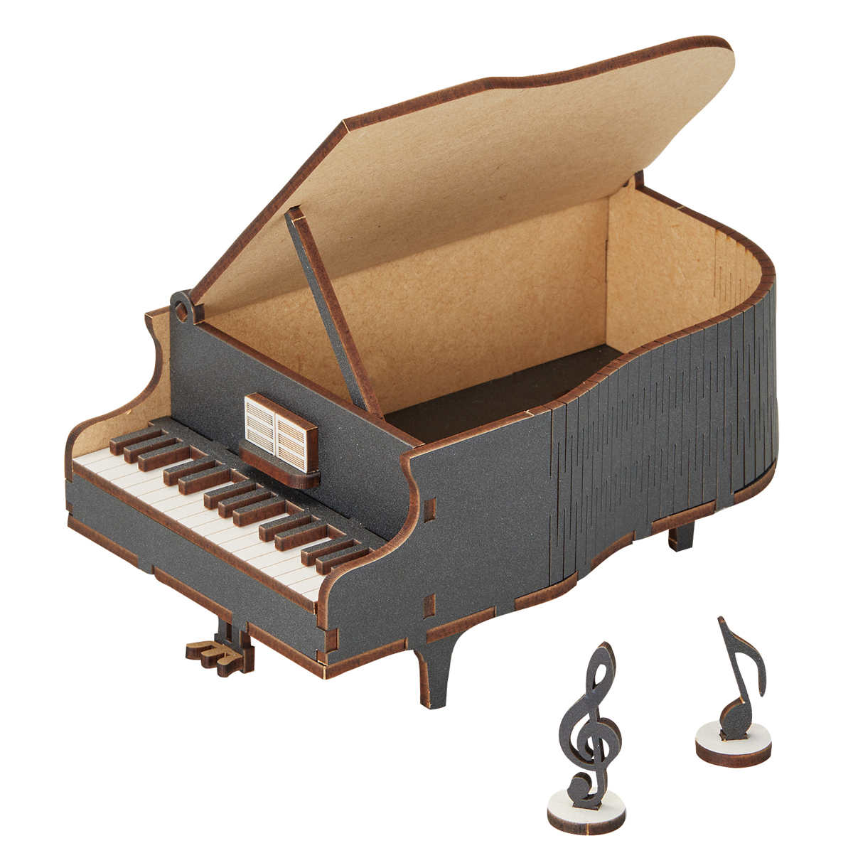 ●木のパーツを組み立てて完成させるピアノ型の小物入れです。
