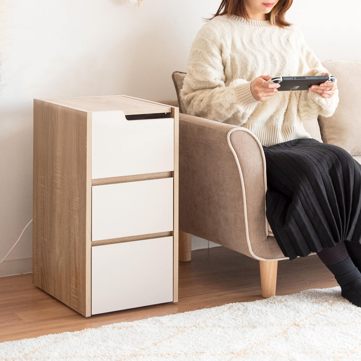 関連キーワード:電源タップ収納 家具 シンプル 幅30 奥行40 高さ60 高さ65 cm センチ バイカラー ツートン 引き出し 引出し 引出 デスクサイド テレビ ゲーム 趣味 ルーター収納 ゲームソフト おしゃれ お洒落 オシャレ 便利 新生活 模様替 コントローラー キャビネット スイッチ スイッチ2 Nintendo Switch 白 北欧 ブラック 黒 淡色