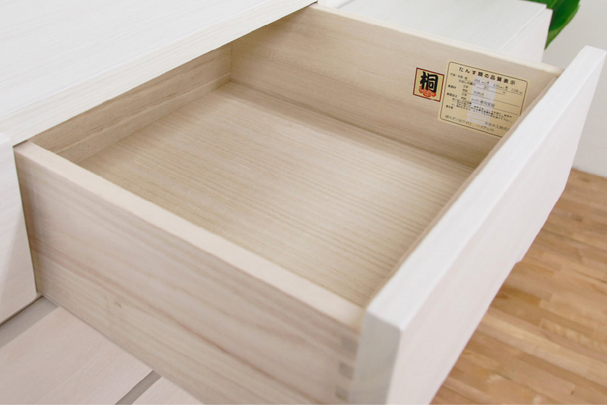 湿気に強く、虫を寄せ付けない桐製の引出し