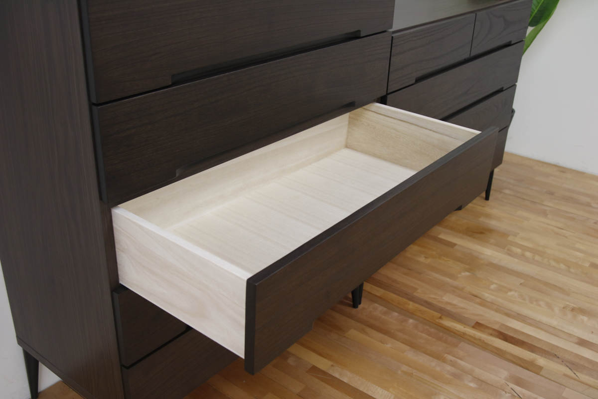 桐×伝統技法×モダン、古き良き日本の伝統文化を融合した桐製チェストです。シックなカラーリングに、ブラックアイアンの脚がアクセントです。調湿機能を持った桐材は、日本の四季に最も合った材質と言われ、環境にもやさしい素材です。