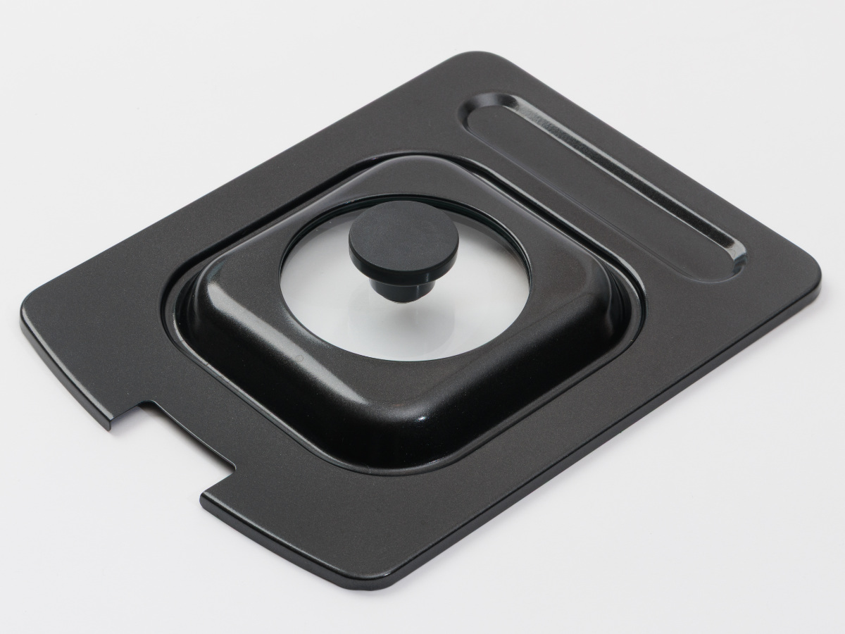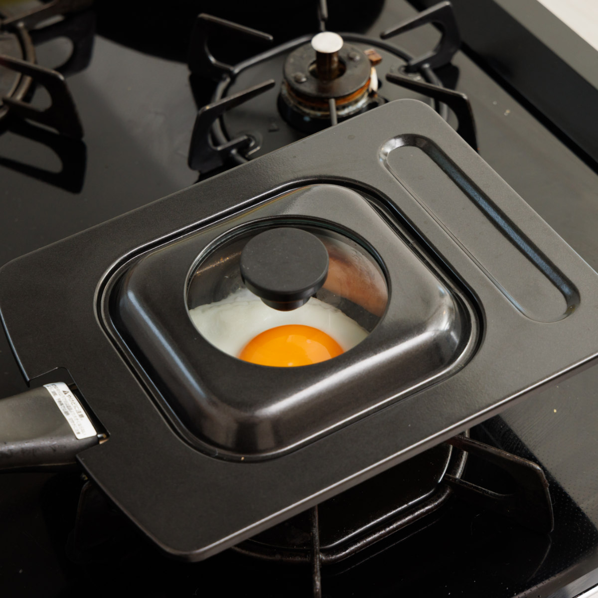 内径約13×17cm~15.5×19cmまでの卵焼き器に対応する蓋です。角型の卵焼き器にぴったり合うスクエア形状です。