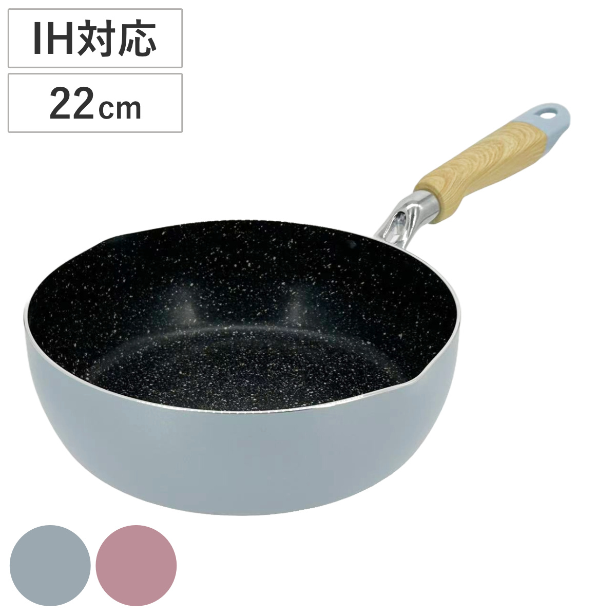 いため鍋 22cm IH対応 チェロレ フッ素樹脂加工 深型フライパン ( ガス火対応 ふっ素加工 軽い 深型 炒め鍋 22センチ 片手鍋 フッ素加工 フッ素コーティング アルミ製 おしゃれ ) 【ピンク】