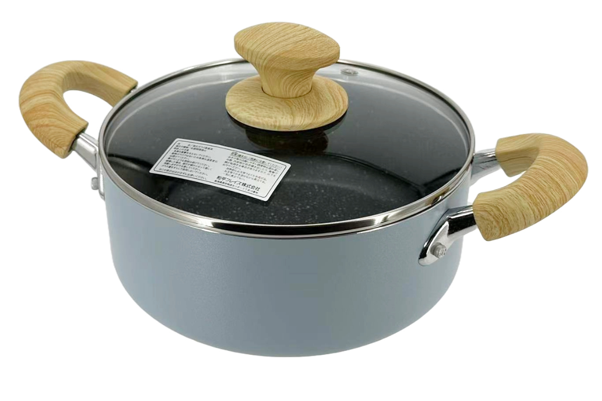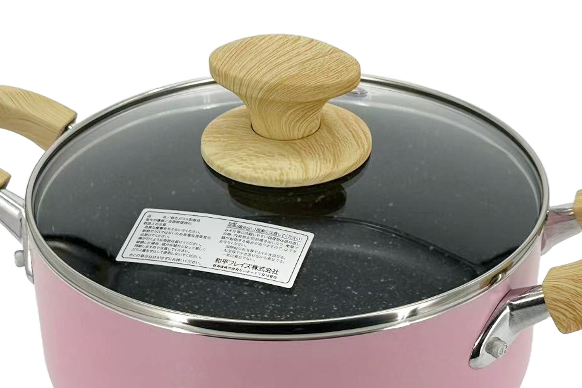| 材質 | 本体:アルミニウム合金 底面:ステンレス鋼 内面:ふっ素樹脂加工(シルクウエアEL・マーブル) 外面:焼付塗装 蓋:強化ガラス |