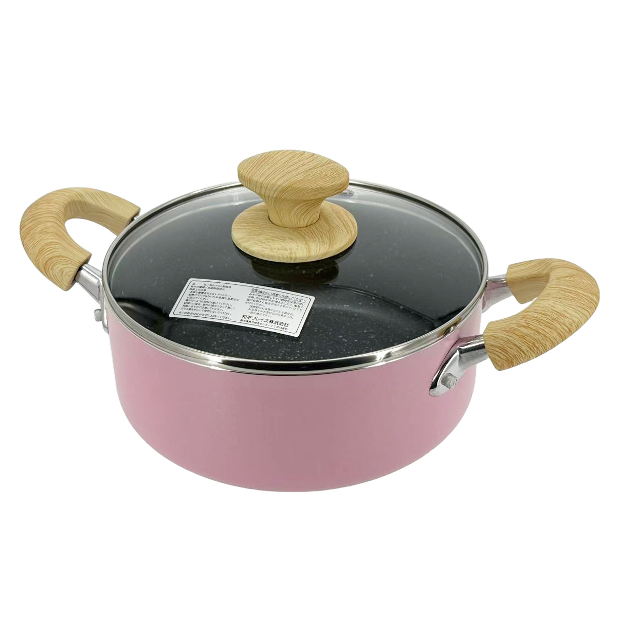 両手鍋 20cm IH対応 チェロレ フッ素樹脂加工 ( ガス火対応 ふっ素加工 軽い 両手なべ ガラス蓋付き 20センチ フッ素加工 フッ素コーティング アルミ製 ふた付き おしゃれ ) 【ピンク】