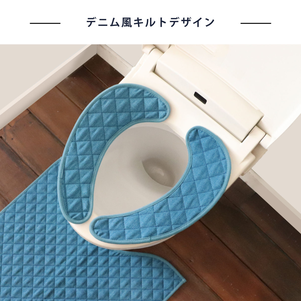 ●爽やかなデニム風生地にキルト加工を施した便座シートです。