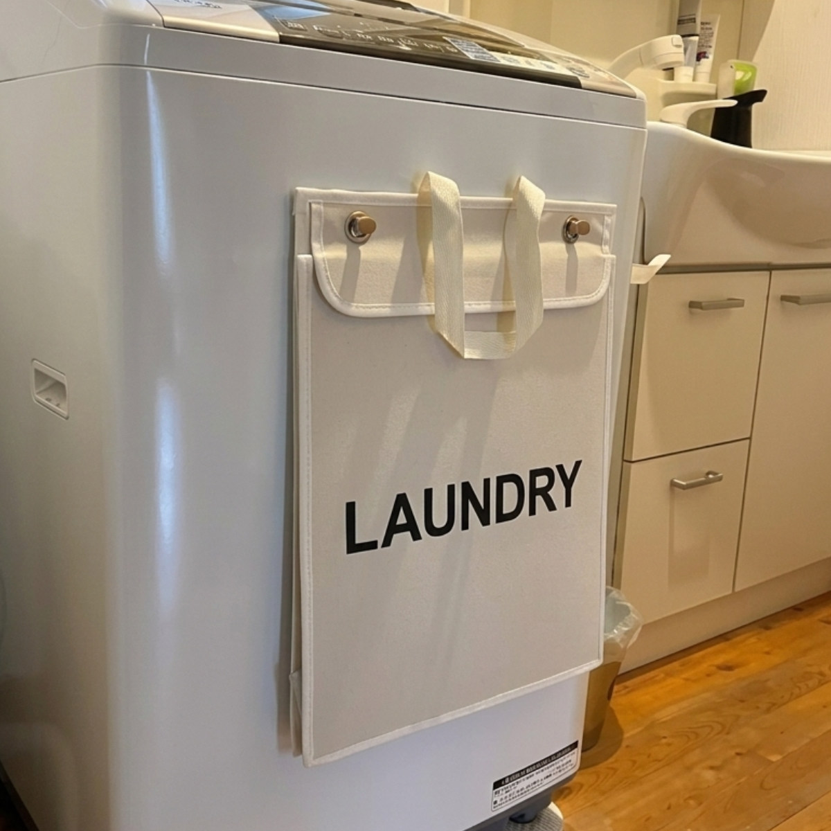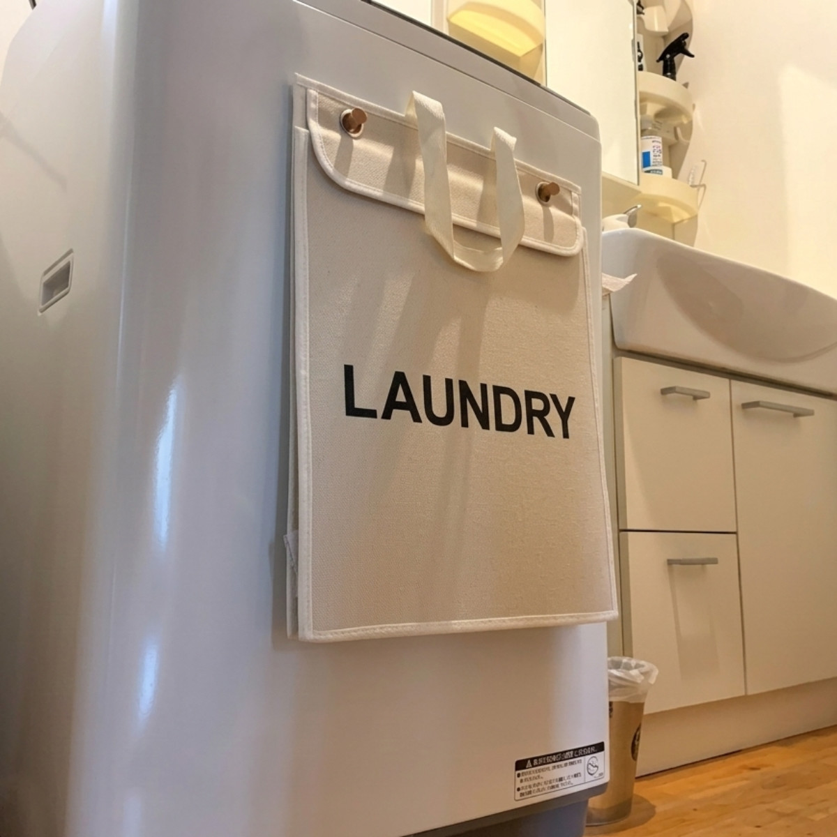 センターに「LAUNDRY」のロゴ入りのシンプルで洗練されたデザインです。落ち着いた色味なので飽きが来ず、インテリアにも合わせやすいです。