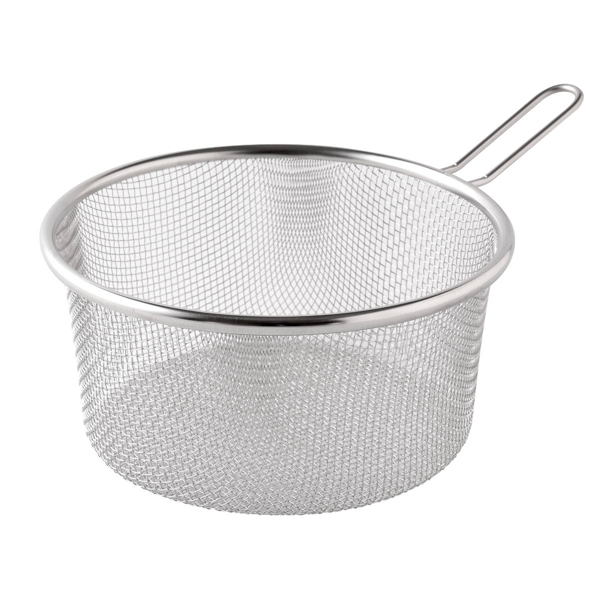 ストレーナーでから揚げやフライドポテトなどを一気に引き上げられ、時間差による揚げムラを防ぎます。野菜などを洗ったりザルとして使っても便利です。