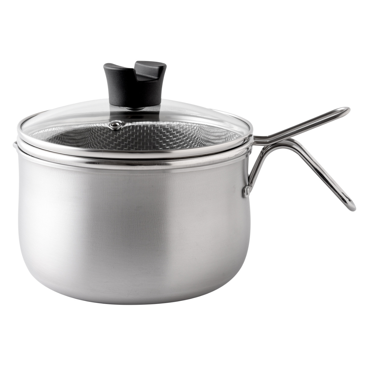 マルチポット 18cm IH対応 ストレーナー付き ステンレス製 逸品物創 ( ガス火対応 片手鍋 天ぷら鍋 片口鍋 ガラス蓋 ソースパン オール熱源対応 燕三条 2.9L 18センチ ステンレス鍋 片手なべ ケトル 揚げ鍋 )