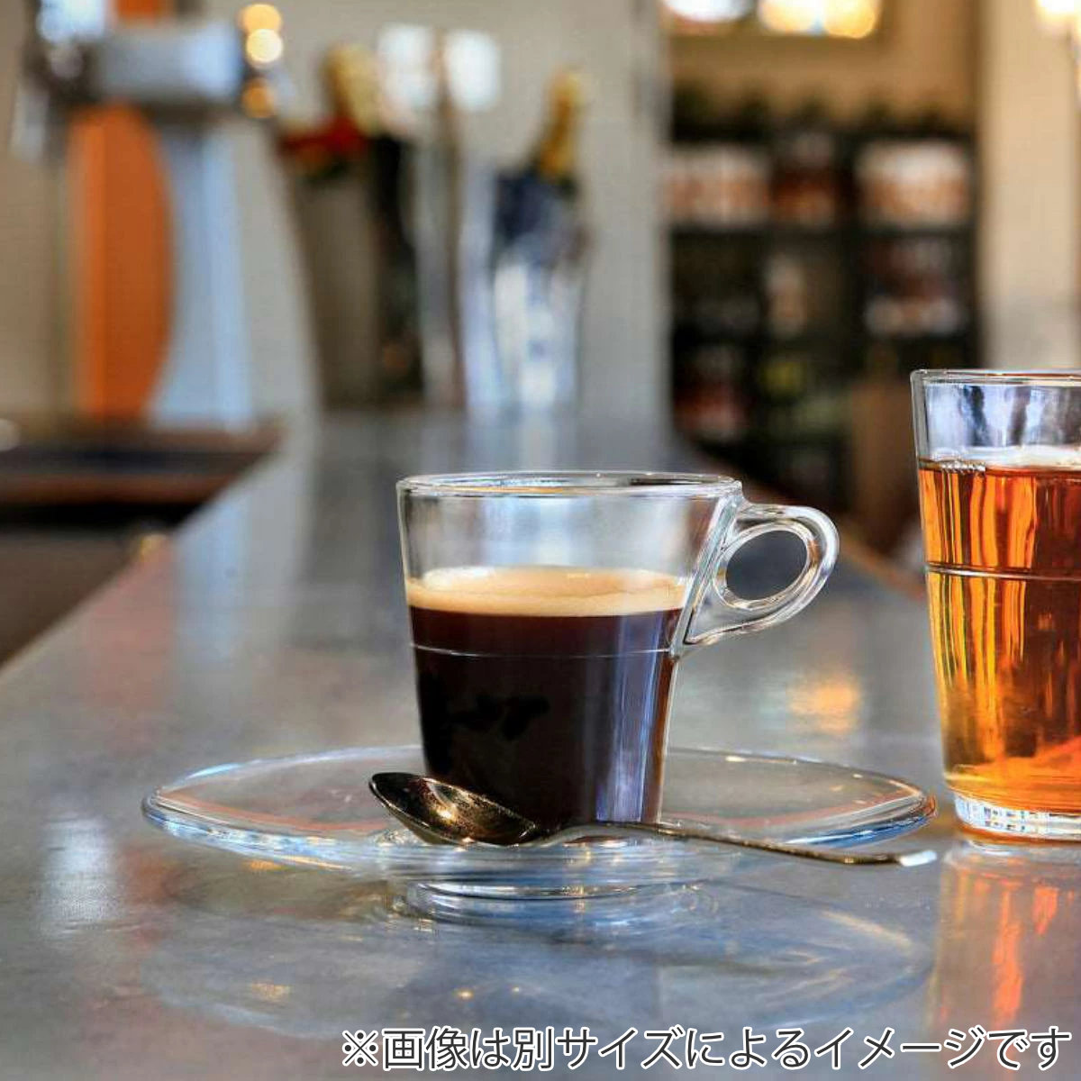 コーヒーや紅茶を1杯分ちょうどよく注げるサイズです。ガラスの透明感が美しく、コーヒーの色合いを引き立たせます。アイスクリームなら2~3スクープ程度が入る容量で、毎日の飲み物に使いやすい大きさです。