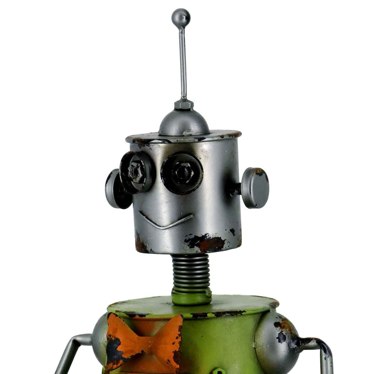 どこか懐かしさを感じさせる、愛らしいロボットのオーナメントです。まるで物語の世界のようなレトロな雰囲気を演出します。