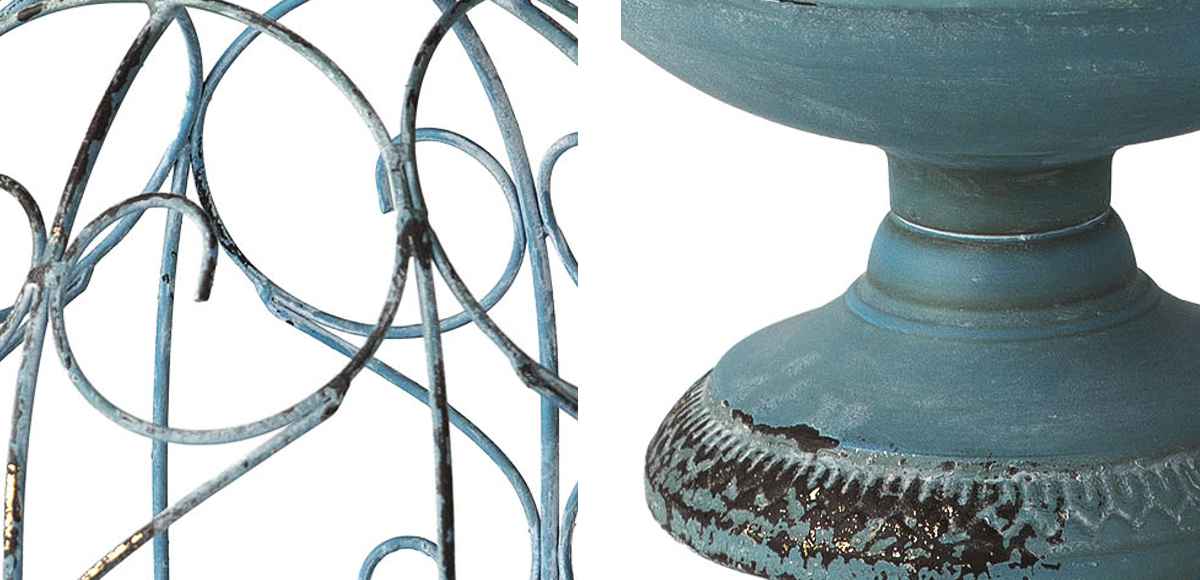 まるでヨーロッパの宮殿を思わせる、美しいデザインのプラントホルダーです。草花の鉢や小さなオーナメント、ガーデンライトなどを中に入れて、自由にアレンジを楽しめます。玄関周りやお庭のアクセントにぴったりです。