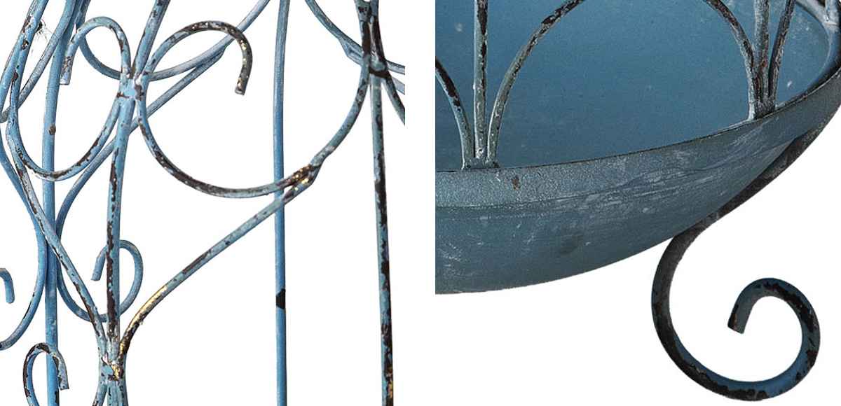 目を惹くブルーカラーが、お庭に調和しながらも静かな存在感を放ちます。鉄製のため使い込むほどに少しずつ表情が変化し、いっそう風合いが深まります。