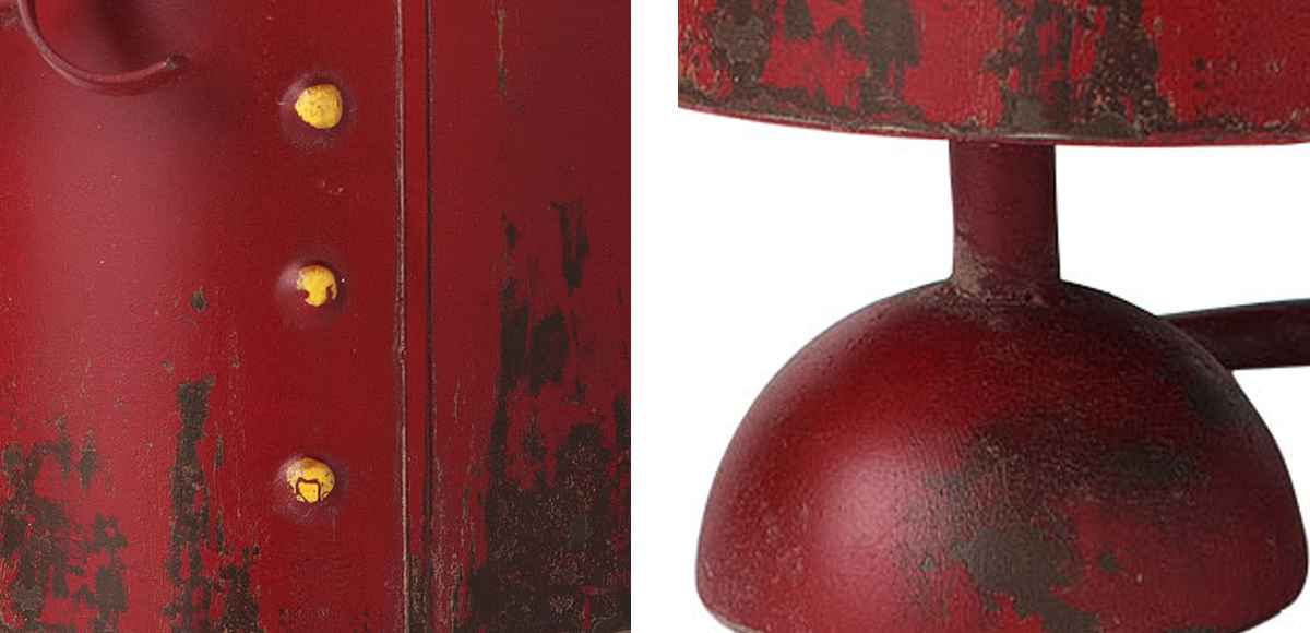 長い年月を経たようなアンティークな風合いが魅力です。塗装のはがれや錆び風の加工を施し、細部にまでこだわりを感じる仕上がりです。