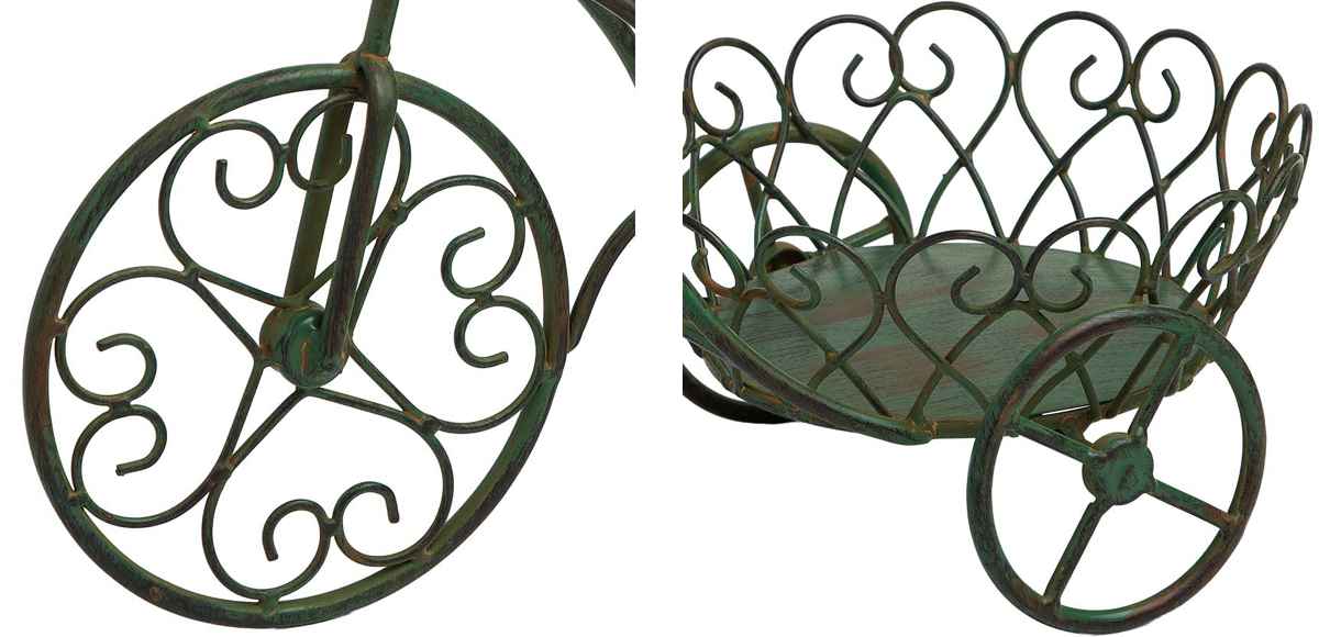 自転車モチーフの美しいフラワースタンドです。草花の鉢や小さなオーナメント、ガーデンライトなどを中に入れて、自由にアレンジを楽しめます。玄関周りお庭のアクセントにぴったりです。