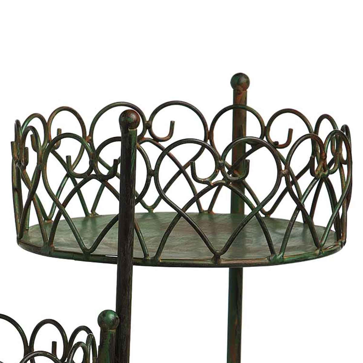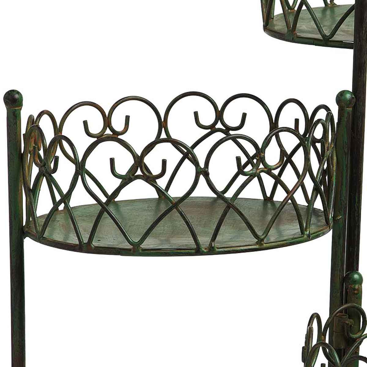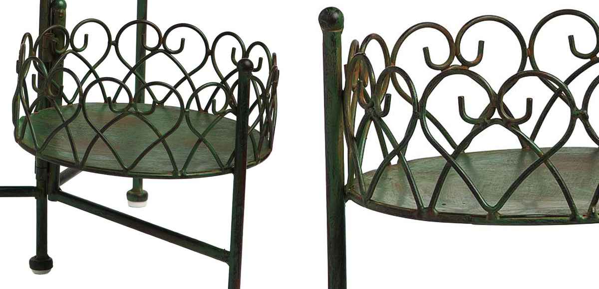 繊細なディティールにこだわった美しいフラワースタンドです。草花の鉢や小さなオーナメント、ガーデンライトなどを中に入れて、自由にアレンジを楽しめます。玄関周りお庭のアクセントにぴったりです。