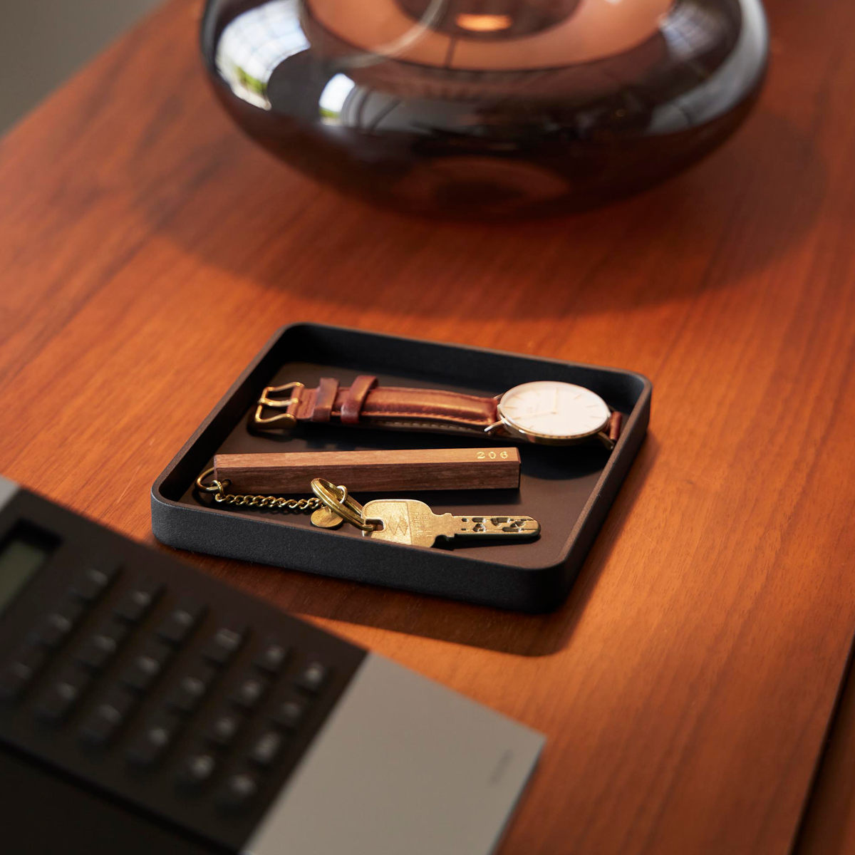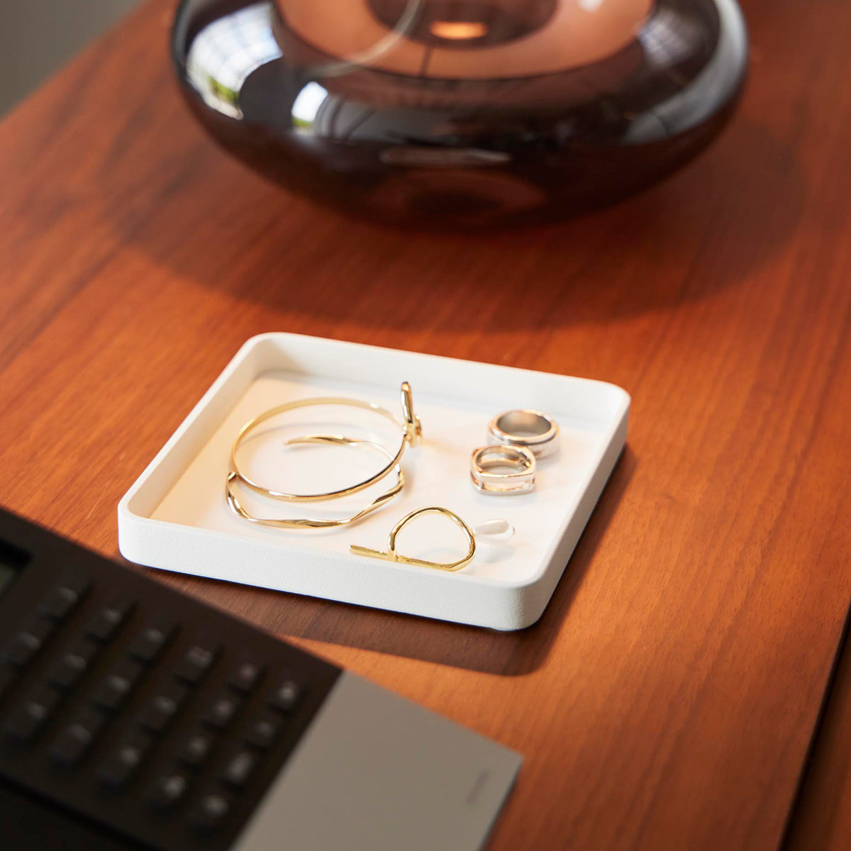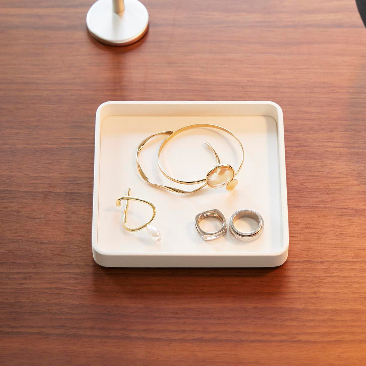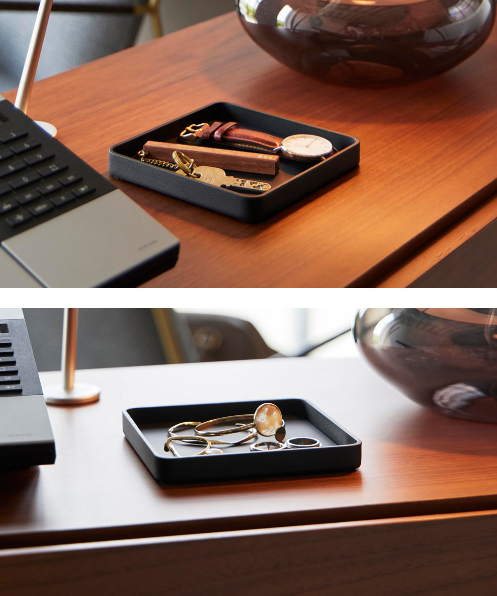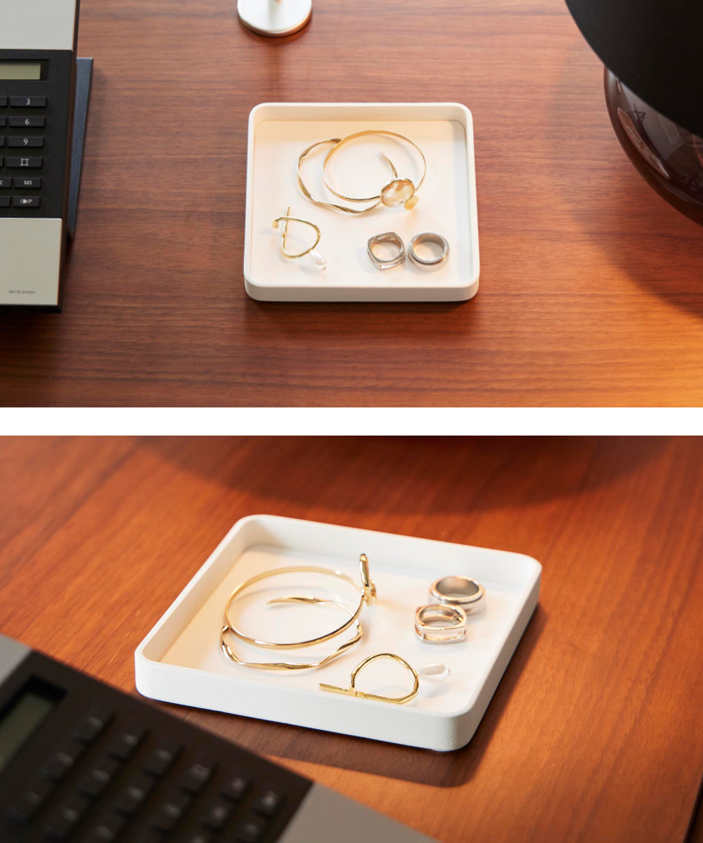 キーやジュエリーをサッと置ける、一時置きに便利なトレーです。デスクの上では、アクセサリーや化粧品を置いて、玄関では鍵のトレイとして、ベッドサイドではメガネを置いたり幅広いシーンで使用できます。