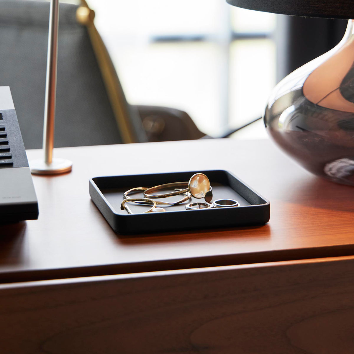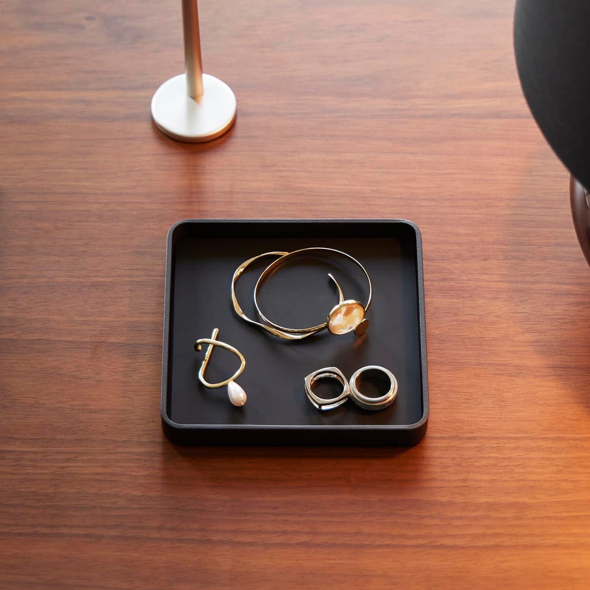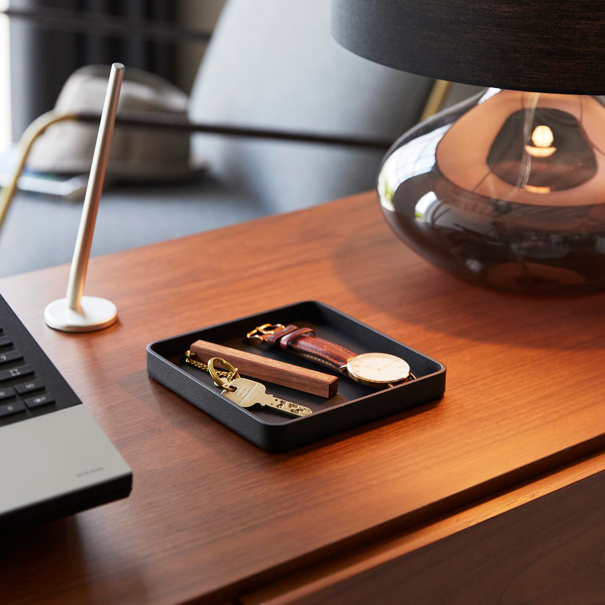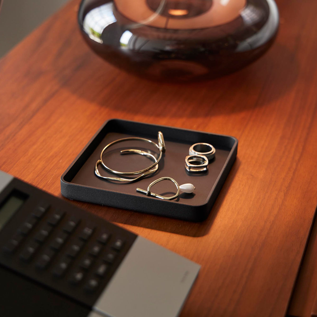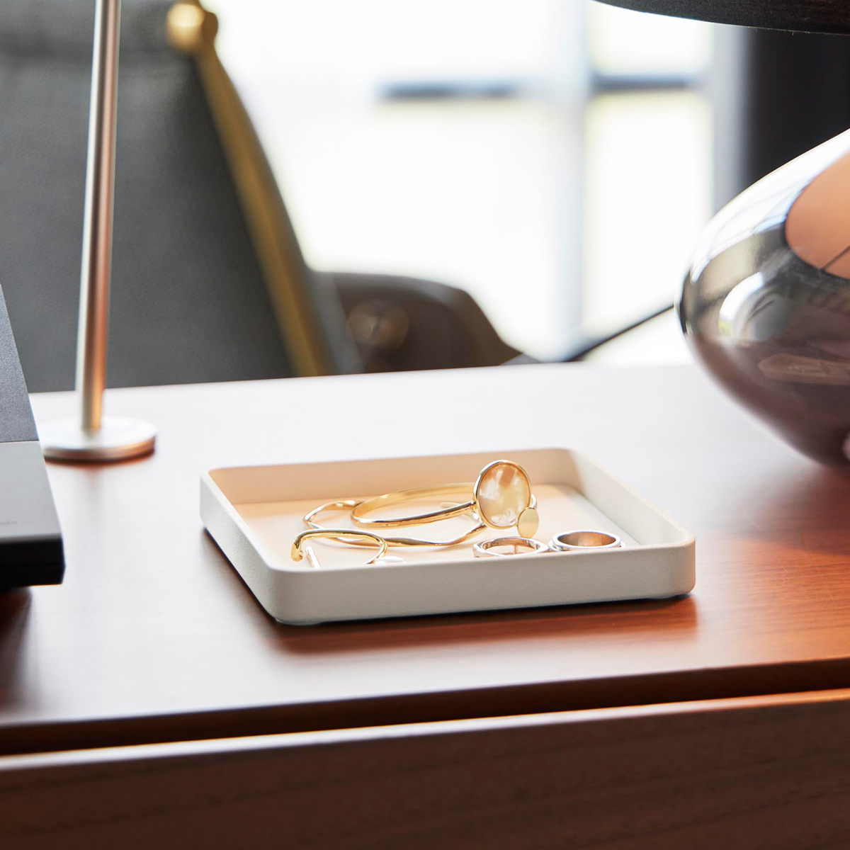 キーやジュエリーをサッと置ける、一時置きに便利なトレーです。デスクの上では、アクセサリーや化粧品を置いて、玄関では鍵のトレイとして、ベッドサイドではメガネを置いたり幅広いシーンで使用できます。