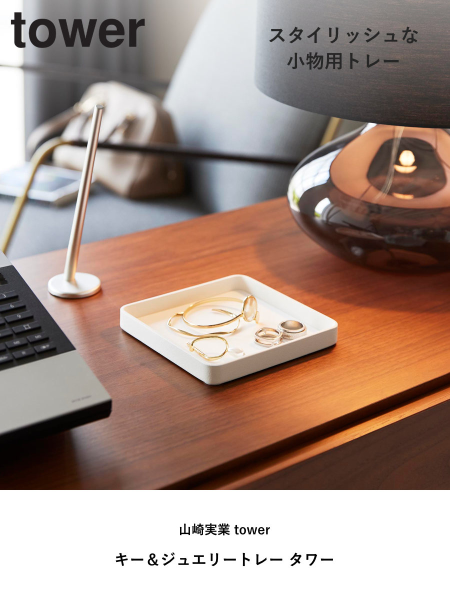山崎実業 tower キー&ジュエリートレー タワー ( 4903208105873 タワーシリーズ アクセサリー トレー トレイ キートレイ キー ジュエリー 小物入れ 収納 アクセサリー収納 ジュエリートレイ マット付き ) 【ホワイト】