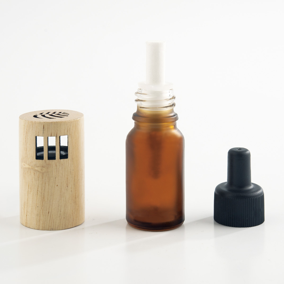 お部屋や車内に馴染むシンプルでおしゃれなデザインです。保存用キャップが付いているので、使わない間もオイルを安心して保管できます。