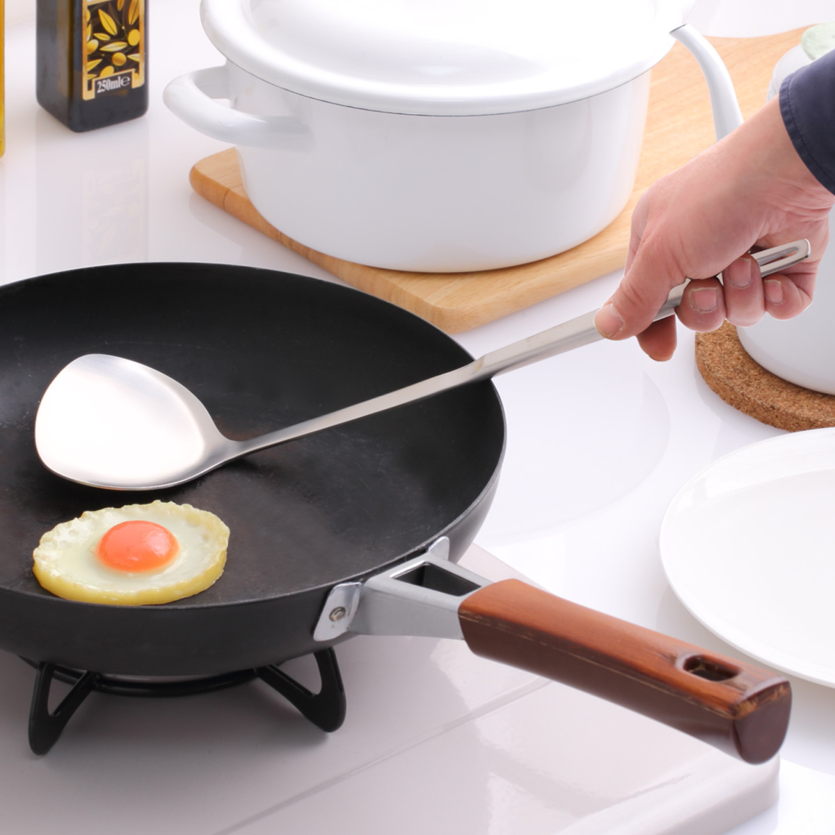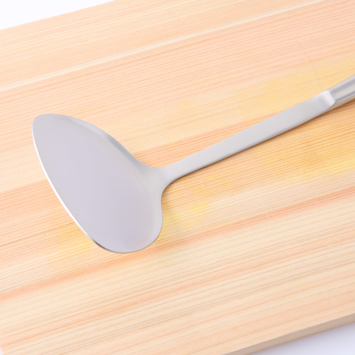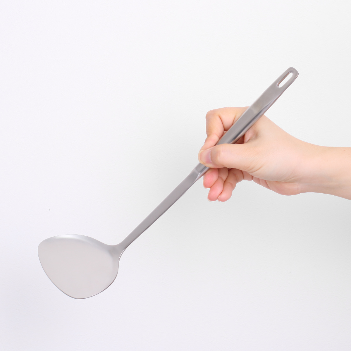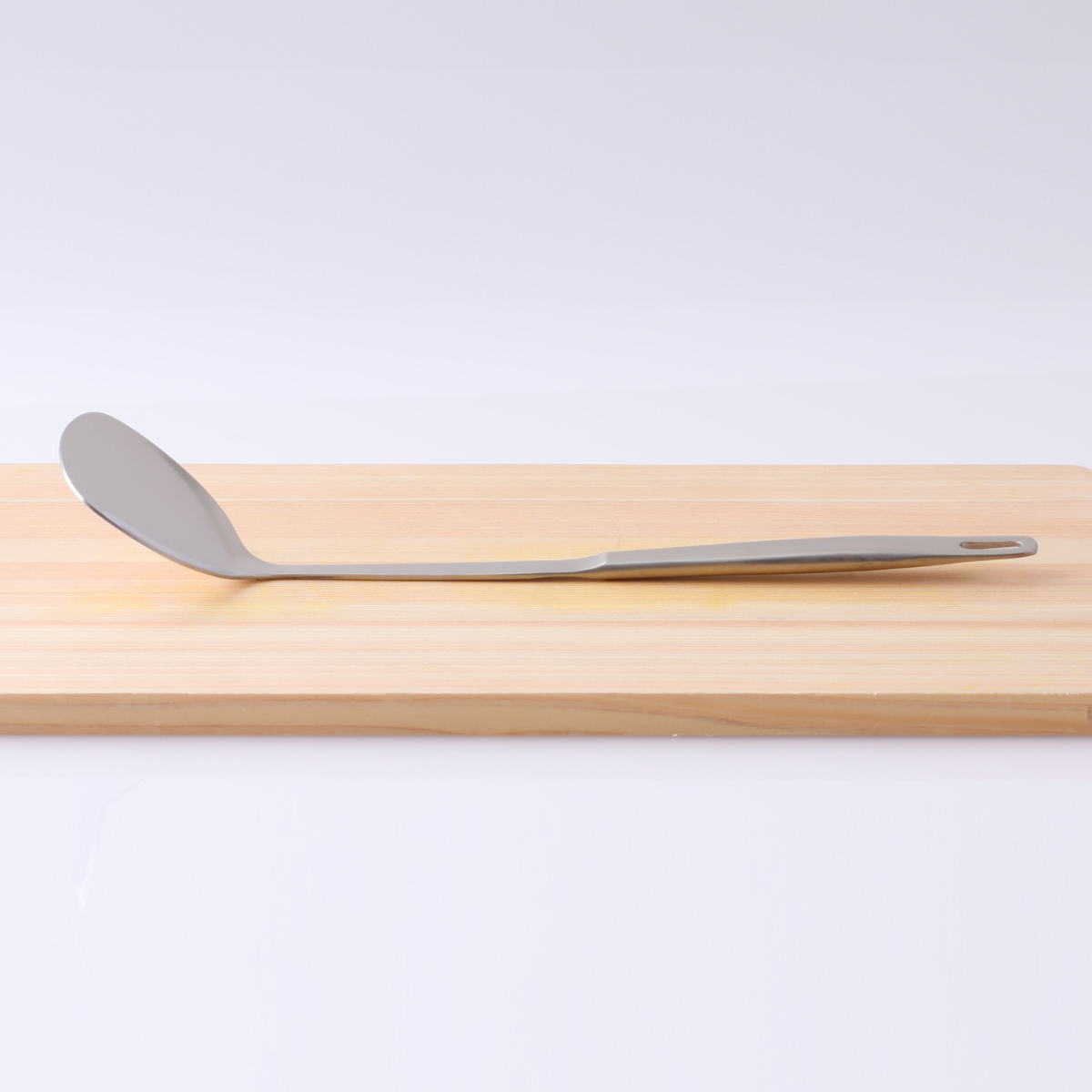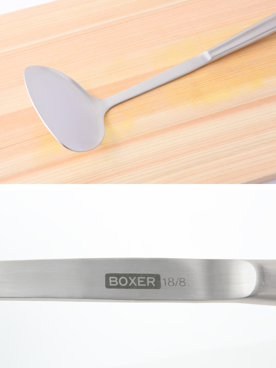 継ぎ目がない一体型なので衛生的にお使いいただけます。また、把手部分は空洞なので熱が伝わりにくく、軽いので扱いやすいです。