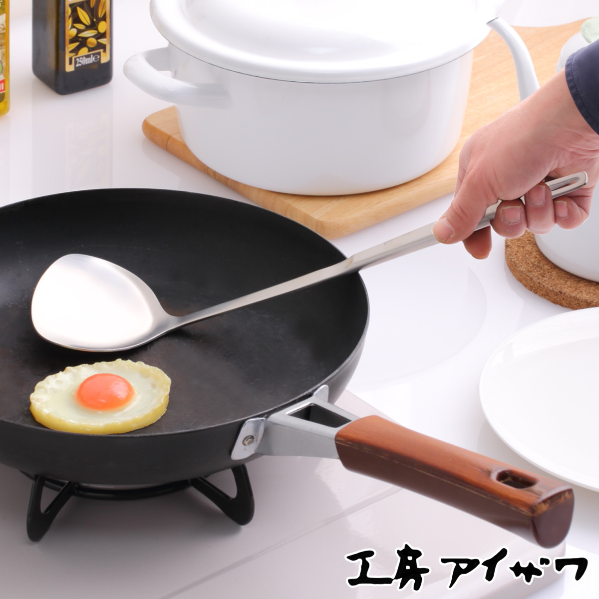 工房アイザワ ホーローハンドル 中華返し ( aizawa 中華ヘラ ステンレスターナー フライ返し ヘラ ビーター 日本製 ステンレス製 ターナー ステンレス製ターナー へら 盛り付け キッチンツール キッチン用品 中華用品 )