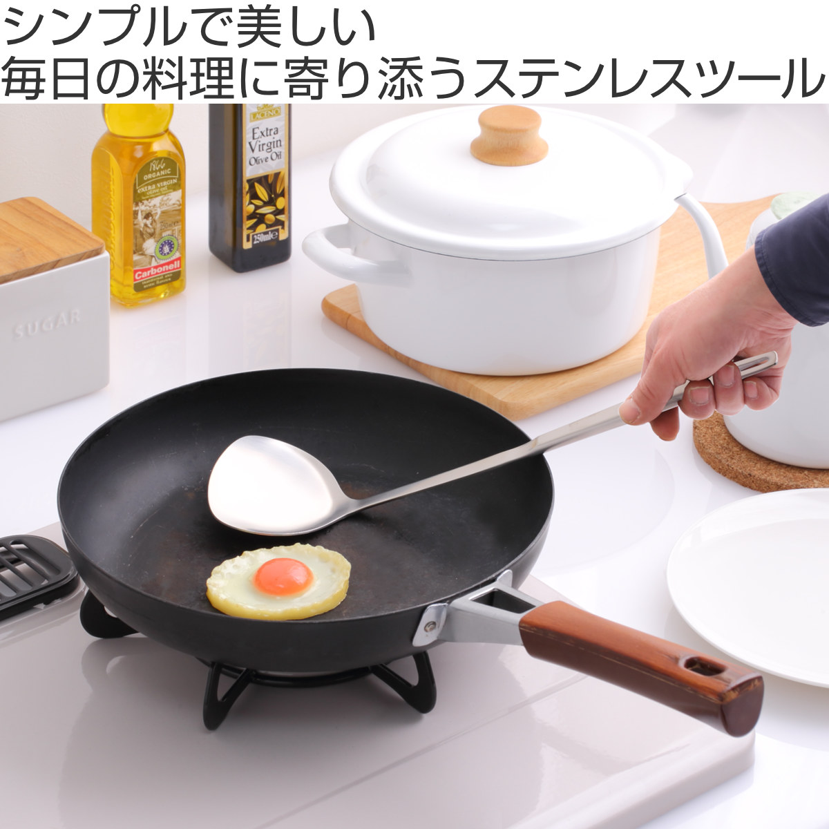 シンプルな形状で使い込むほど愛着がわく、ホーローハンドルシリーズです。シリーズで揃えていただくことで、キッチンに統一感が生まれます。