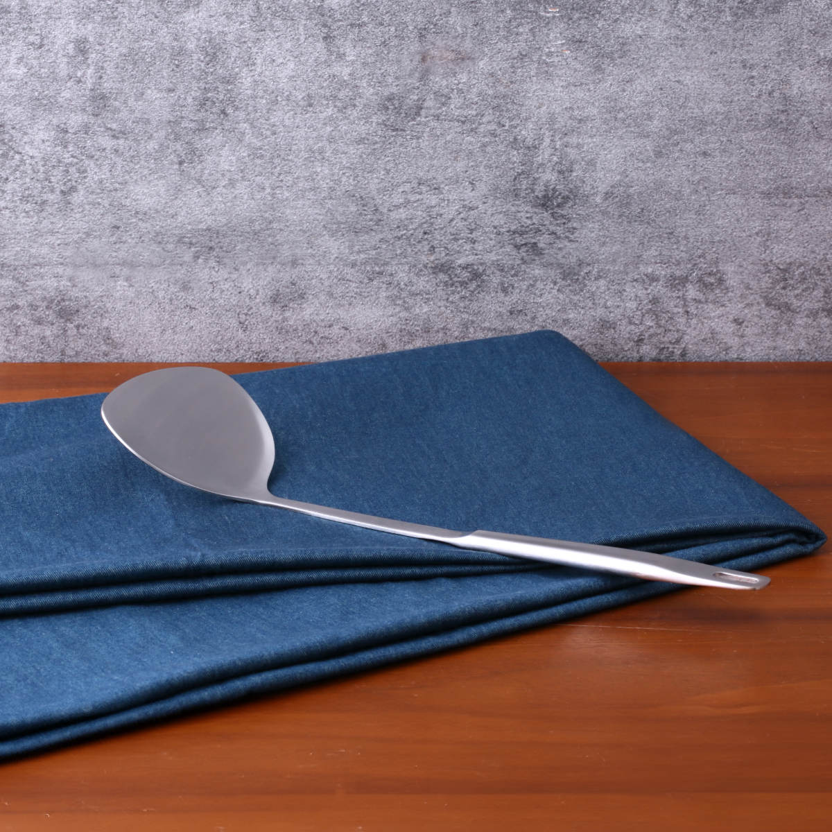 丸みのある広めの形状で食材をしっかりすくえるので、炒め物や煮物の取り分け、盛り付けに最適です。ほどよい深さがあるので、汁気のある料理やあんかけ料理にも便利です。