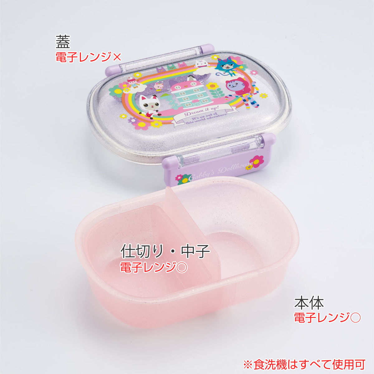 弁当箱 360ml ふわっとタイトランチBOX ギャビーのドールハウス26 ( ギャビー ランチボックス 食洗機対応 レンジ対応 日本製 ドーム蓋 キッズ 子供 食洗機OK レンジOK お弁当 弁当 一段 2点ロック )