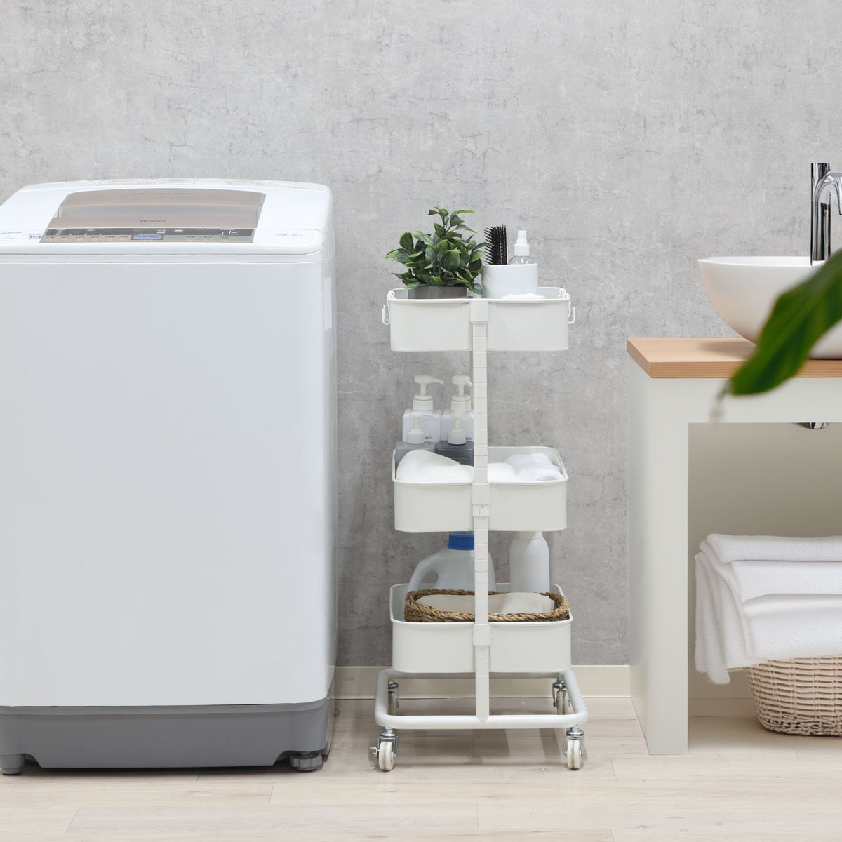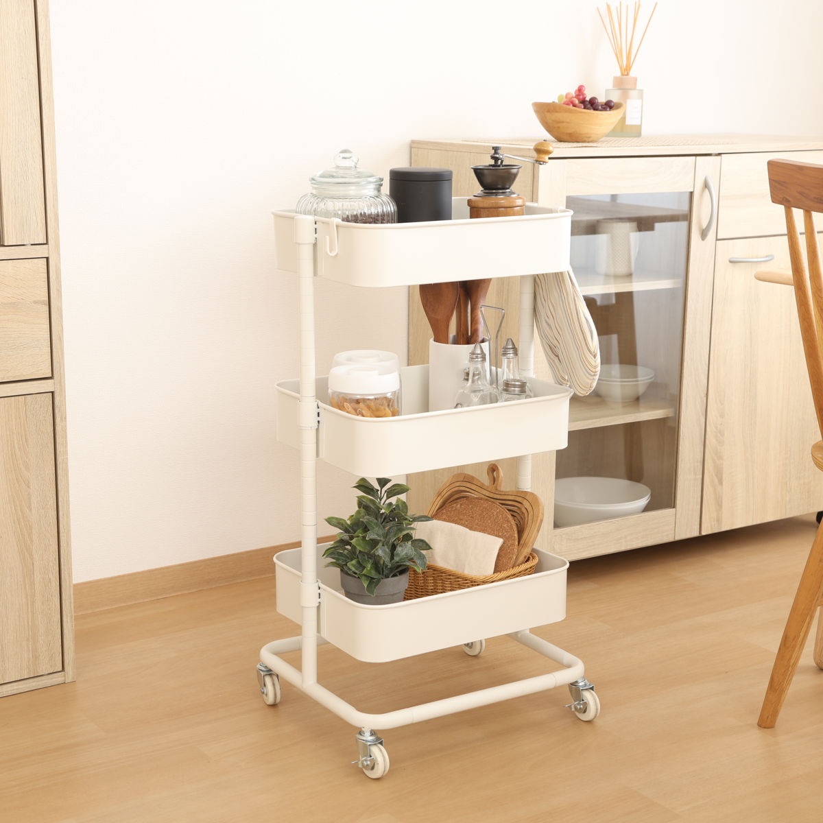 キッチンはもちろん、リビングの小物収納や洗面所の洗剤・ストック用品置きとしても便利にお使いいただけます。