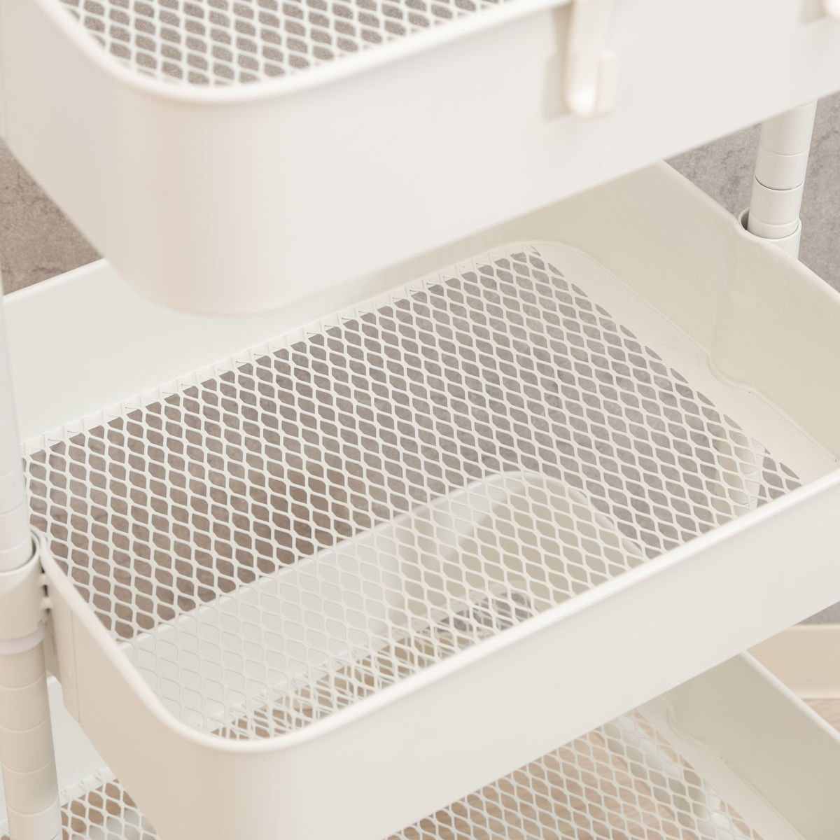 バスケットの底は通気性の良いメッシュ仕様です。ほこりが溜まりにくく、お手入れも簡単です。