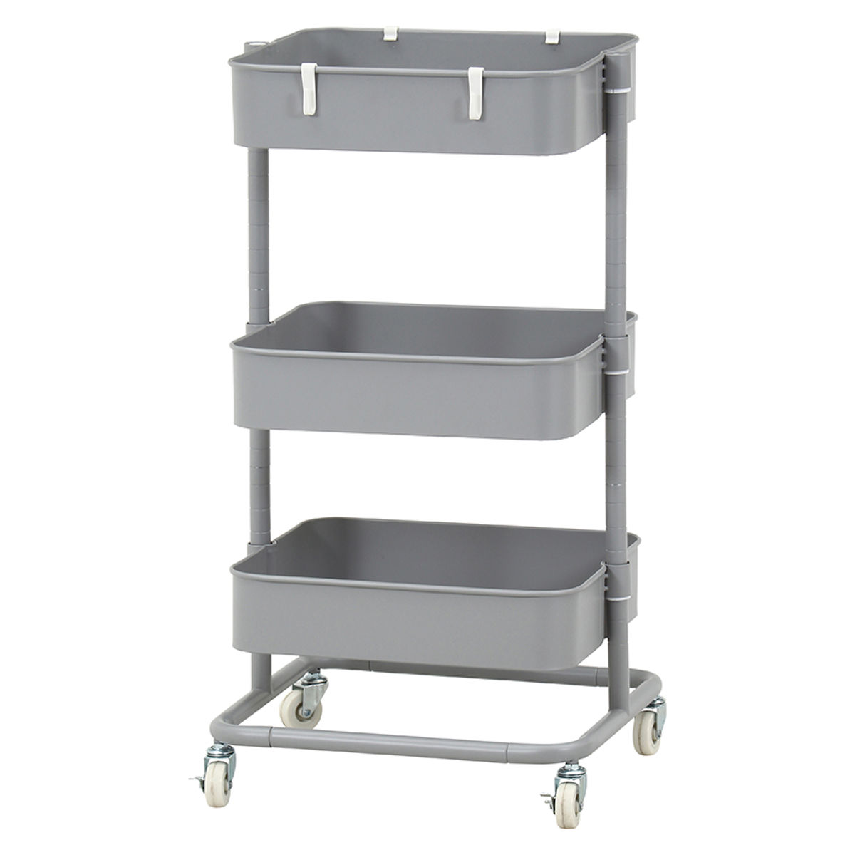 キッチンワゴン 高さが調整できる ワゴン マルシェ ( キッチンラック スチールラック 収納 可動ラック キャスター フック付き スチール メッシュ かご バスケット ストッカー メッシュ底 キッチン収納棚 ベビーワゴン デスク横 ) 【グレー】