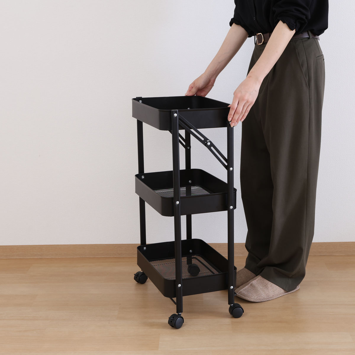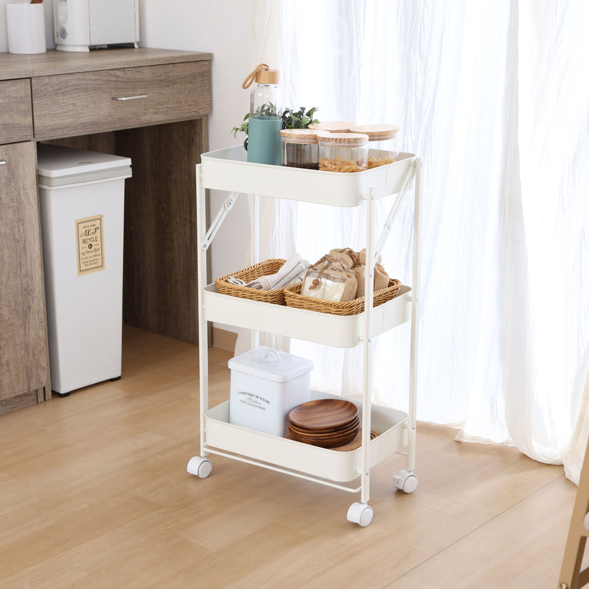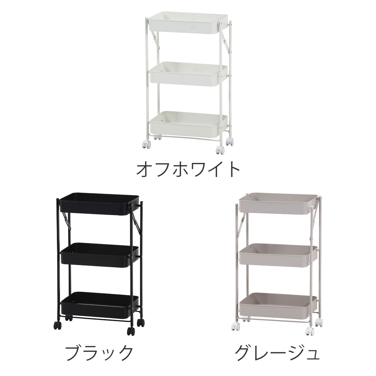 シンプルなデザインで使いやすいキッチンワゴンです。3段のバスケットには調味料からカトラリーまで様々なものを収納でき、キッチンまわりをすっきり整理できます。インテリアやお部屋の雰囲気に合わせて選べる3色展開です。